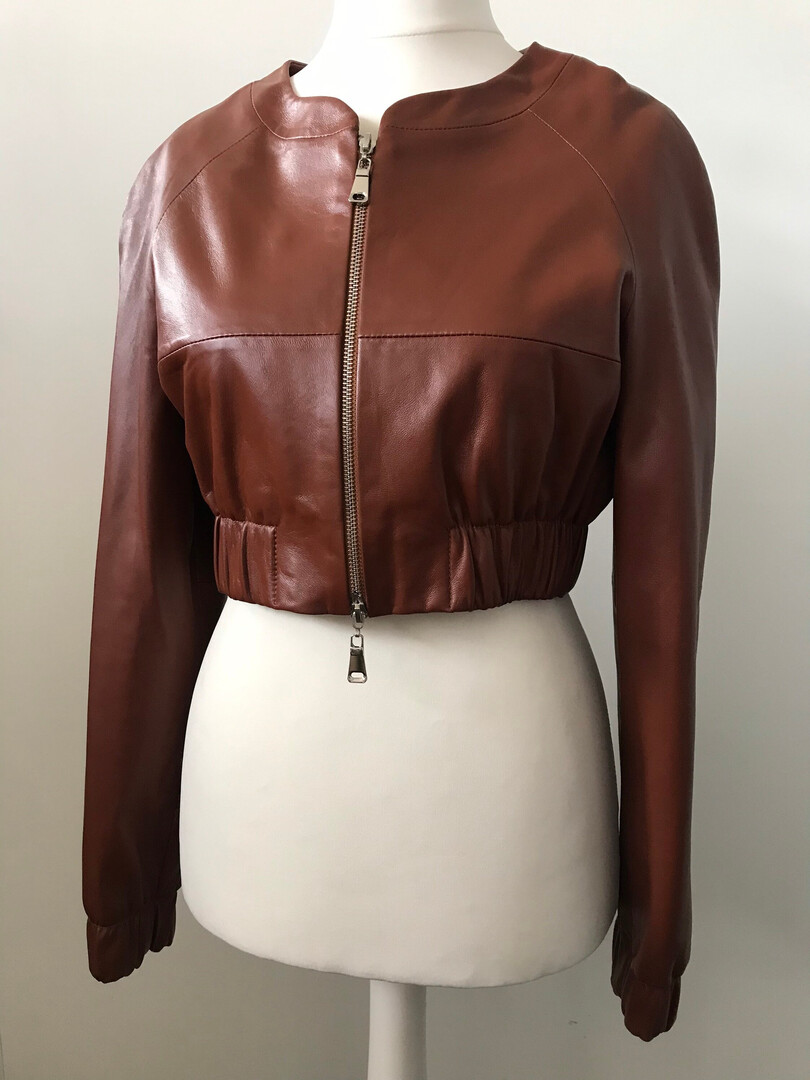 Women Orange leather short jacket, Stand with Ukraine