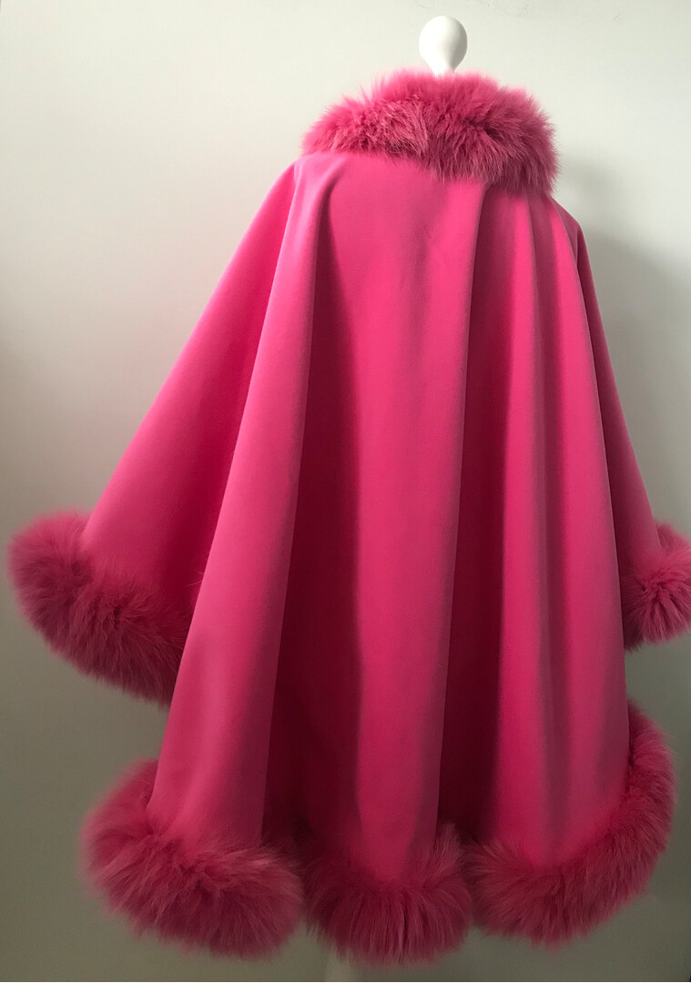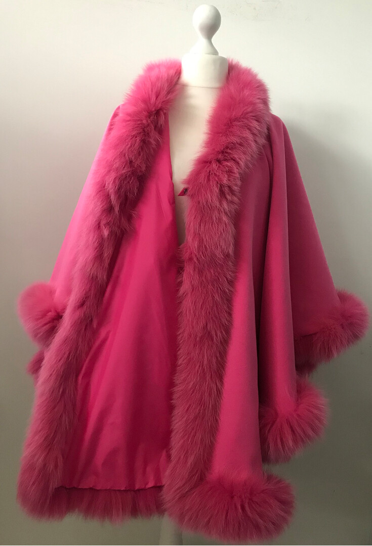 Women Raspberries Cape long Cashmere and trim arctic fox fur, Stand with Ukraine