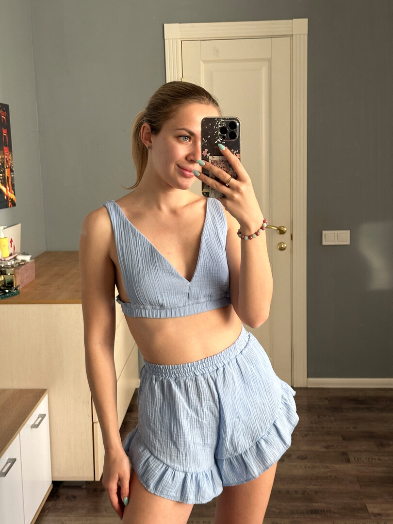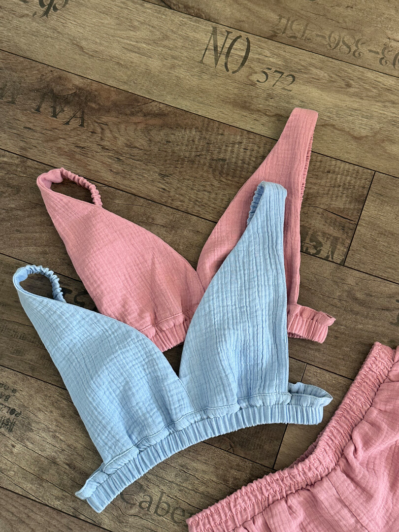 Muslin Set is a lightweight, breathable outfit made from soft muslin fabric, perfect for lounging or sleeping.