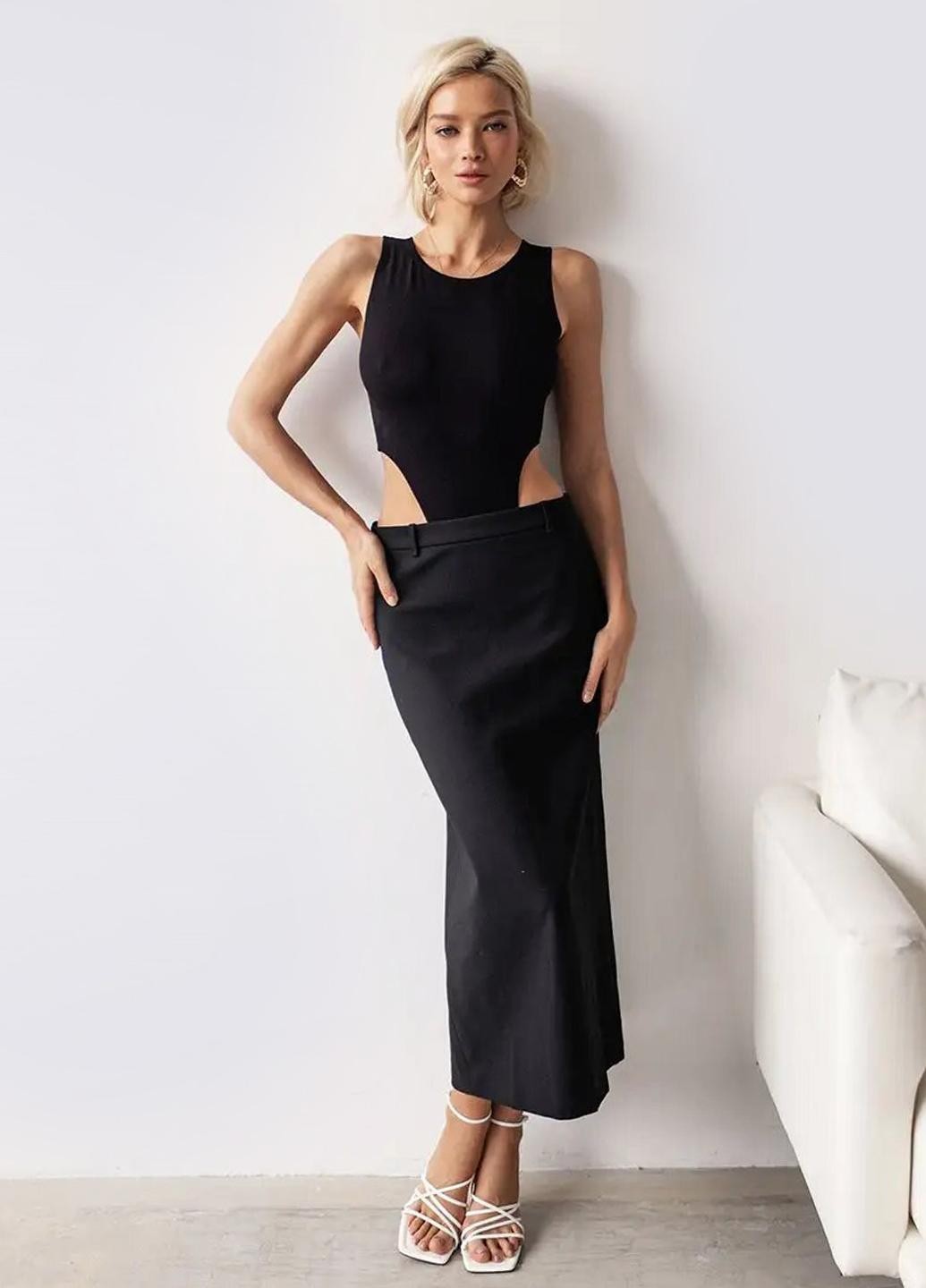 This black cotton bodysuit features hight hipline and a round neckline, balancing casual wear with a hint of allure. The thong-style panties ensure a smooth look under skirts or pants.