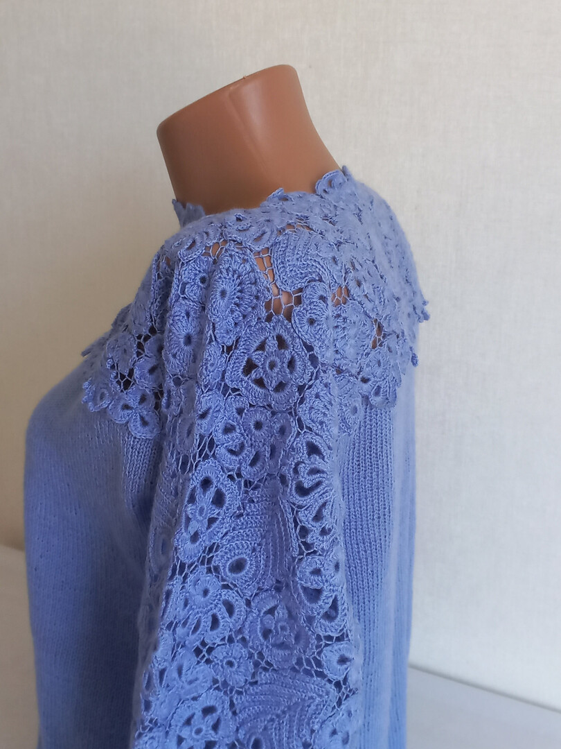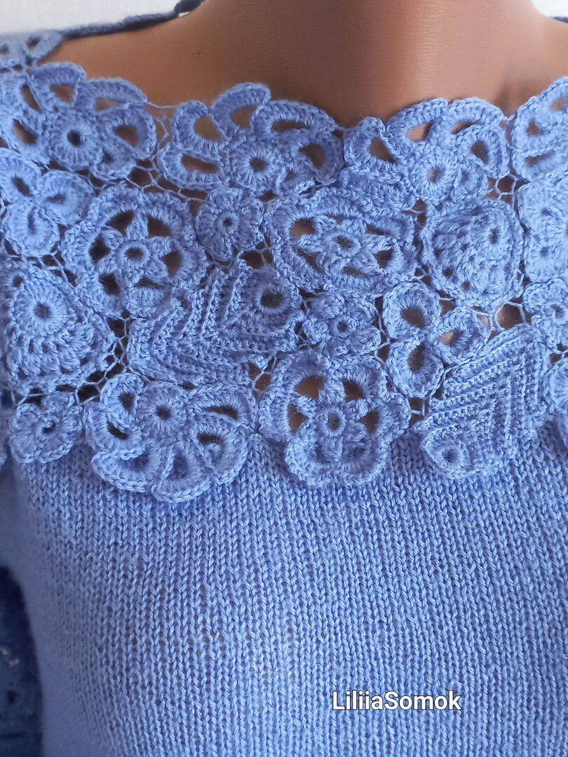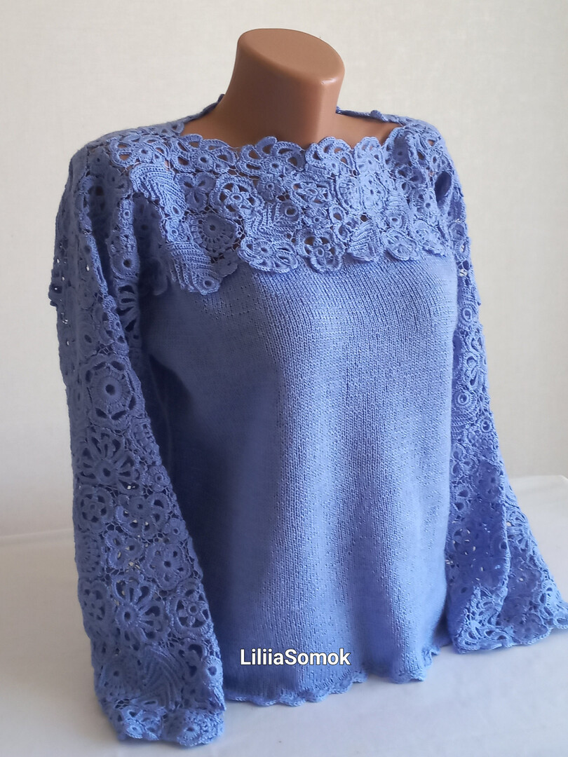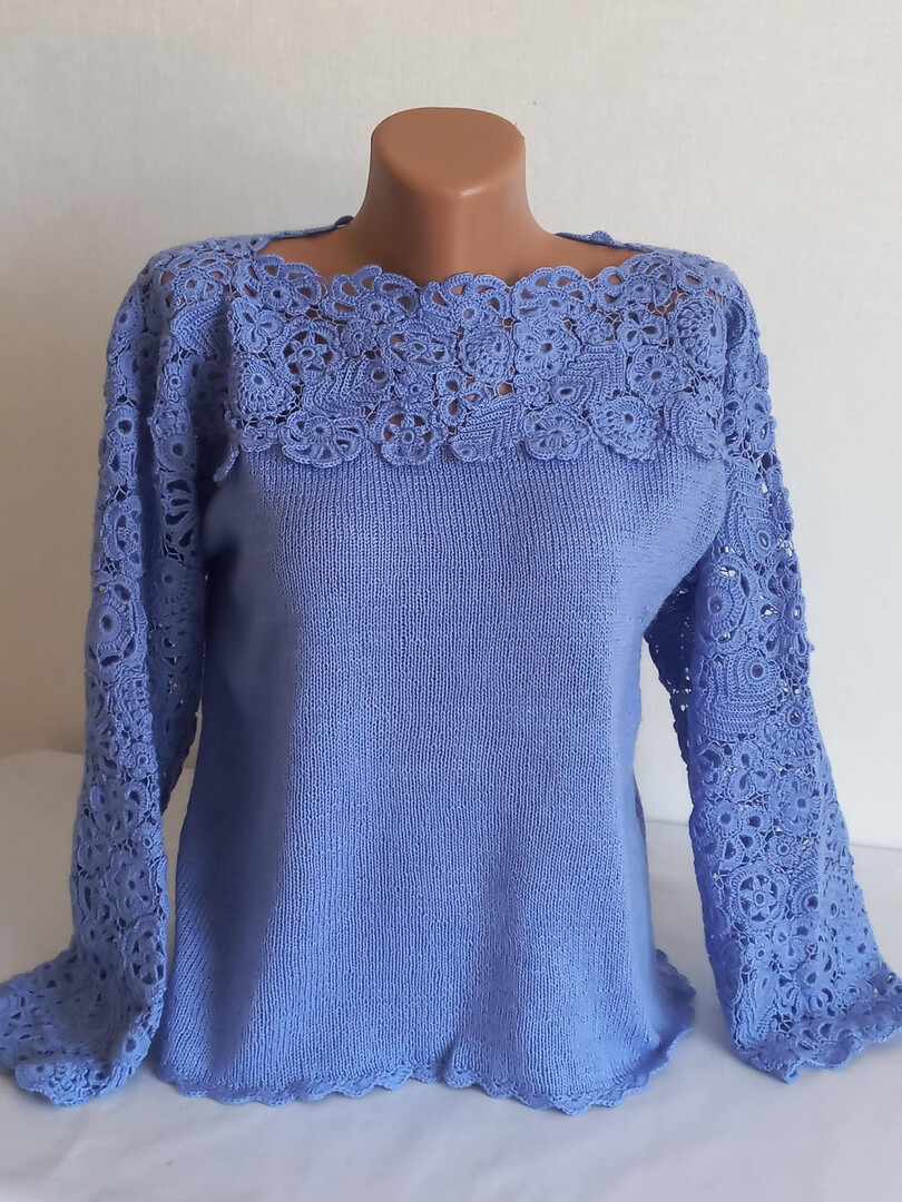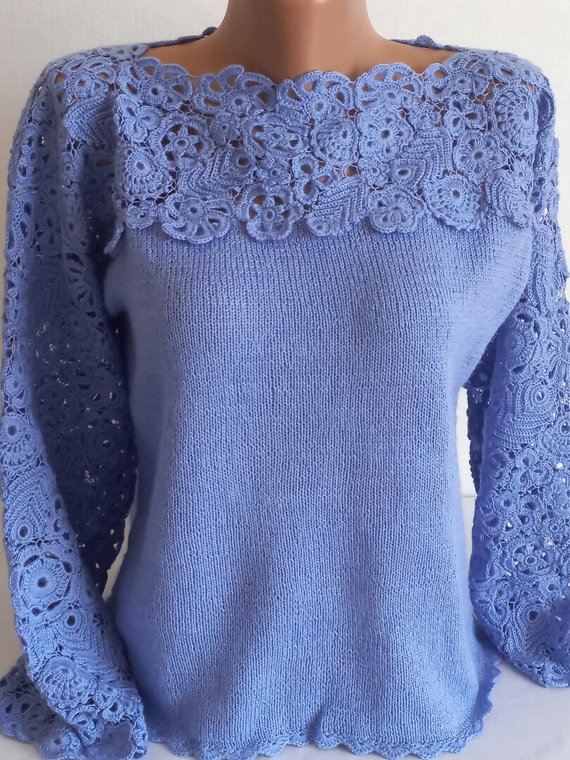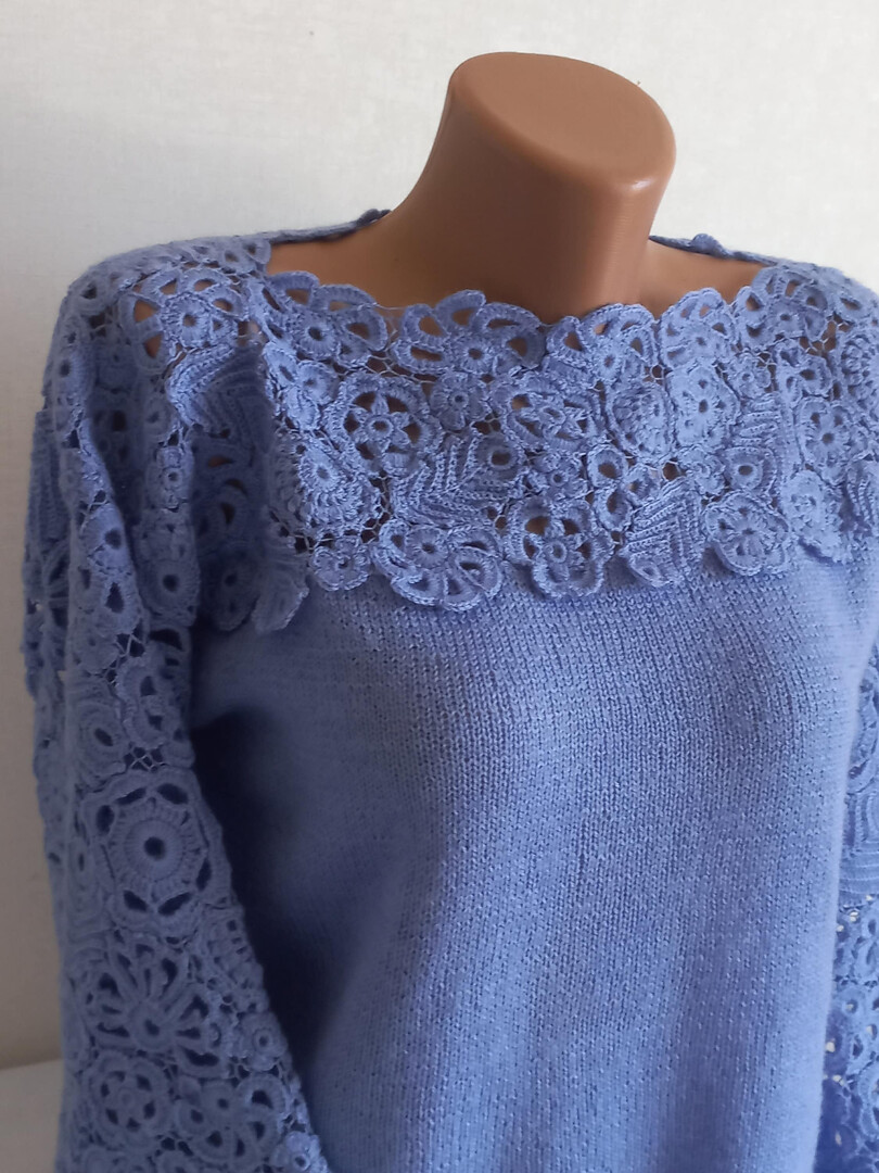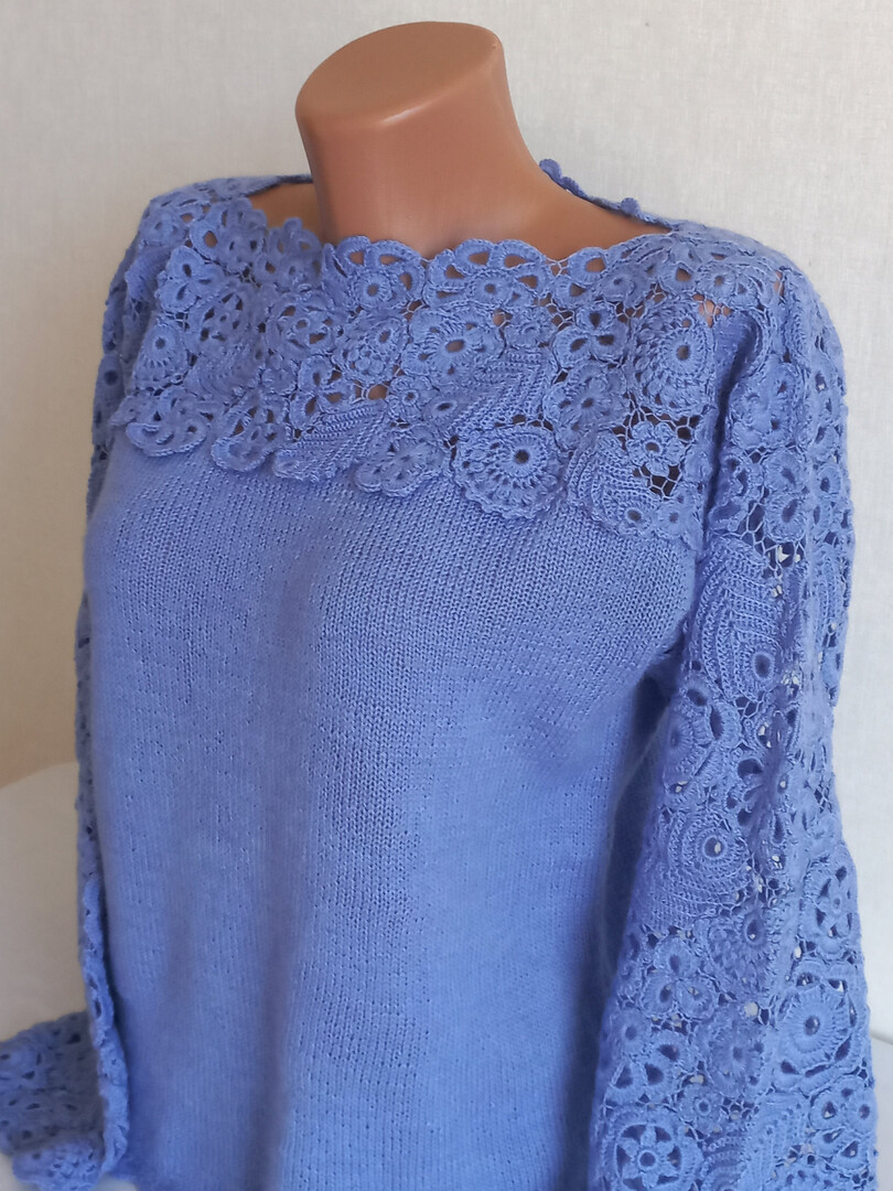 Women's sweater crocheted Autumn sweater knitting Blue knitted sweater Wool sweater