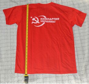 Red t-shirt vintage new Communist Party of Ukraine. Limited edition! Good quality cotton! Red - T Shirt for Men and Woman Condition: new Limited edition! Size at the img. Only this size! Design: Graphic Material: 100%Cotton Brand: Unbranded Department: unisex Sleeve Type: Short Sleeve Country/Region of Manufacture: Ukraine Neckline: Crew Neck   cost: $ 25.50 US $14+ Shipping from Ukraine Design is placed on front side and back side of the shirt.  Hammer and sickle and the inscription "KPU"...Communist Party of Ukraine. QUALITY YOU CAN TRUST: Whether you're at the gym or on the couch my T-shirt makes clothing that will withstand any activity or non activity. You can trust that your clothes will outlast the competition, just like you.