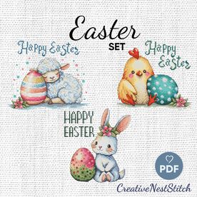 Happy Easter Cross Stitch Pattern Set – a charming collection of three x-stitch designs featuring adorable Easter animals. This cute embroidery set includes a sheep, bunny, and chick, perfect for festive DIY decor, greeting cards, or Easter gifts. Instant PDF download for your next stitching project Product Details Information about thread colors and design sizes is provided in the infographics available in the photo listing. Please review them for all the necessary details. Stitches: Cross-stitch Back stitch Half cross-stitch PDF file includes: Pattern in color symbols (with and without back stitch) Pattern in black & white symbols (with and without back stitch) Key to the pattern Thread Lengths An additional link to the XPS file for Cross Stitch Saga Instant Download: Upon payment, the digital file will be available for instant download. Etsy will send you an email with a link. You can also access your downloads by going to: My Account > Purchases > Click the download button next to the item. The download will include a ZIP file; make sure to unzip the folder to extract the files. Please Note: This is a digital file for cross-stitch embroidery. You will need cross-stitch software (or Cross Stitch Saga) to open and use the pattern. Support and Refunds: Due to the digital nature of the product, refunds are not available. However, if you encounter any issues with downloading or using the file, please feel free to contact me, and I will be happy to assist you!