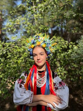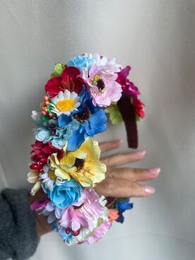 This handcrafted Ukrainian floral wreath is a vibrant and traditional headpiece, perfect for cultural events, festivals, or adding a unique touch to any outfit. Adorned with realistic artificial flowers, including sunflowers, poppies, and blue cornflowers, it represents Ukrainian heritage and beauty. The wreath also features long, colorful satin ribbons in shades of yellow, red, blue, and green, flowing gracefully down from the back, symbolizing unity and harmony. Made with attention to detail, this headpiece is comfortable to wear and adjustable to fit various sizes. Celebrate Ukrainian culture or add a pop of color to your wardrobe with this stunning accessory.    Ukrainian flower crown Ukraine national hair wreath Bride Ukrainian crown Ukraine bride Ethnic wreath Roses flower crown Wildflower headband.  ready to ship!!!!! flower crown, red viburnum, Red hair poppies, Ukrainian national headband, Ethnic flower crown, Red blue and yellow ribbonsUkrainian red flower crown Ukraine national hair wreath Bride Ukrainian crown Ukraine bride Ethnic wreath flower crown  Wildflower headband            Ukrainian burgundy flower crown Ukraine national hair wreath Bride Ukrainian crown Ukraine bride Ethnic wreath Roses flower crown headbandUkrainian Flower Crown Floral Headband Red White Bridal Hair Wreath Headband Bride folk crown Woodland Spring Bride Ukrainian crown Ukrainian Poppy Flower Crown Floral Headband Flower Headdress Bohemian Headpiece Oversized Flower Crown Floral Crown Headband Head WreathA beautiful flower crown, a lovely acessory, perfect for a party or wedding.