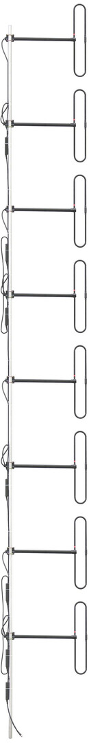 DA-1408 is a 8-dipole elements array high gain wide band UHF antenna for professional radio systems. Dipole incorporates 1/4 wave coax line matching circuit optimized for wide bandwidth and accurate matching. Maximum gain is achieved by coupling single dipoles into array. Dipoles in array are coupled by precision phasing cable harness keeping low SWR and minimum insertion losses. All connections made by soldering and are the one-piece. The vertical distance between centers of dipoles is 0.7 wave length. All antenna parts are made of aluminum. All components of dipole elements are DC grounded for better lighting and anti-static protection.  Frequency range:      MHz           140 – 165 Bandwidth SWR Gain, dBs:                                         12 Power rating, W:                              400 Overall dimensions,  m:              H 10   W 0.9 Impedance, Ohm:                             50  Termination:                                N- female Lightning protection:                DC Grounded  It is a serially manufactured antennas, it has high quality and reliability. Important: each antenna produced for each specific order and personal needed customer frequency range, so when you place the order, let me know your desired central (transmitting) frequency. The shipping time to US by regular shipping service is usually about 15 days. Also usually we need about 20 days to produce the antenna. Note: because of local customs, we not are sending any paper instructions by parcel! Short manual for installation: Install the supplied hardware exactly as shown in the photo. Colored markers on each dipole indicate upward direction. Accordingly, the drainage holes at the end of the antennas should point downward. All dipoles must be installed strictly on the same line and in the same plane below each other at an appropriate distance. To calculate the vertical distance in meters, between the centers of the dipoles, it is necessary to multiply the wavelength of the transmission frequency by 0.7 The wavelength can be calculated by dividing 300 by the frequency in MHz. The mast on which the antenna is installed must be no lower than the upper edge of the upper dipole. The antenna mast must be grounded. If you have any questions about the assembly and installation of the antenna, please contact me.
