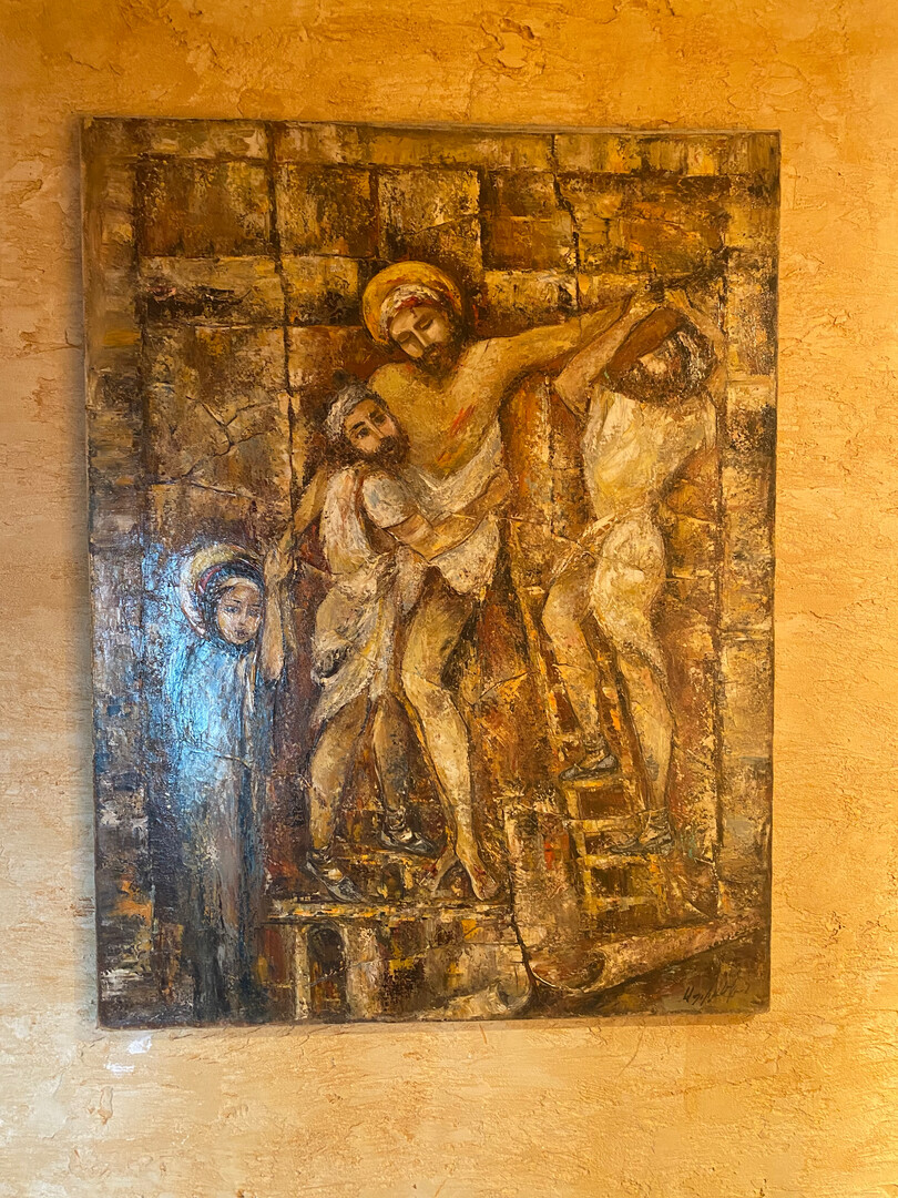 modern oil painting removal from the cross