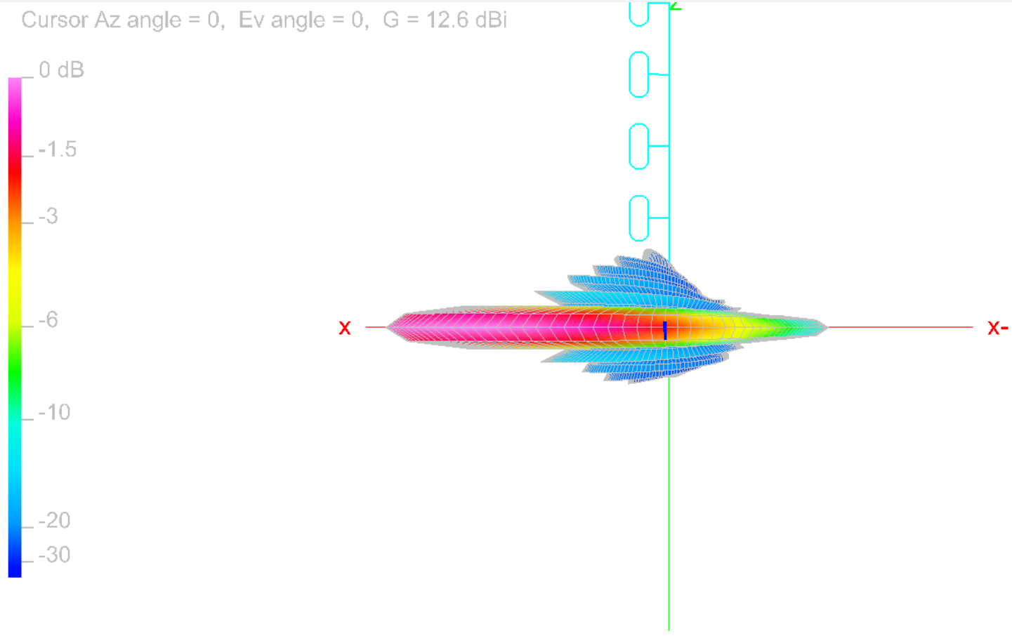 DA-4408 is a 8-dipole elements array high gain wide band UHF antenna for professional radio systems. Dipole incorporates 1/4 wave coax line matching circuit optimized for wide bandwidth and accurate matching. Maximum gain is achieved by coupling single dipoles into array. Dipoles in array are coupled by precision phasing cable harness keeping low SWR and minimum insertion losses. All connections made by soldering and are the one-piece. The vertical distance between centers of dipoles is 0.7 wave length. All antenna parts are made of aluminum. All components of dipole elements are DC grounded for better lighting and anti-static protection.