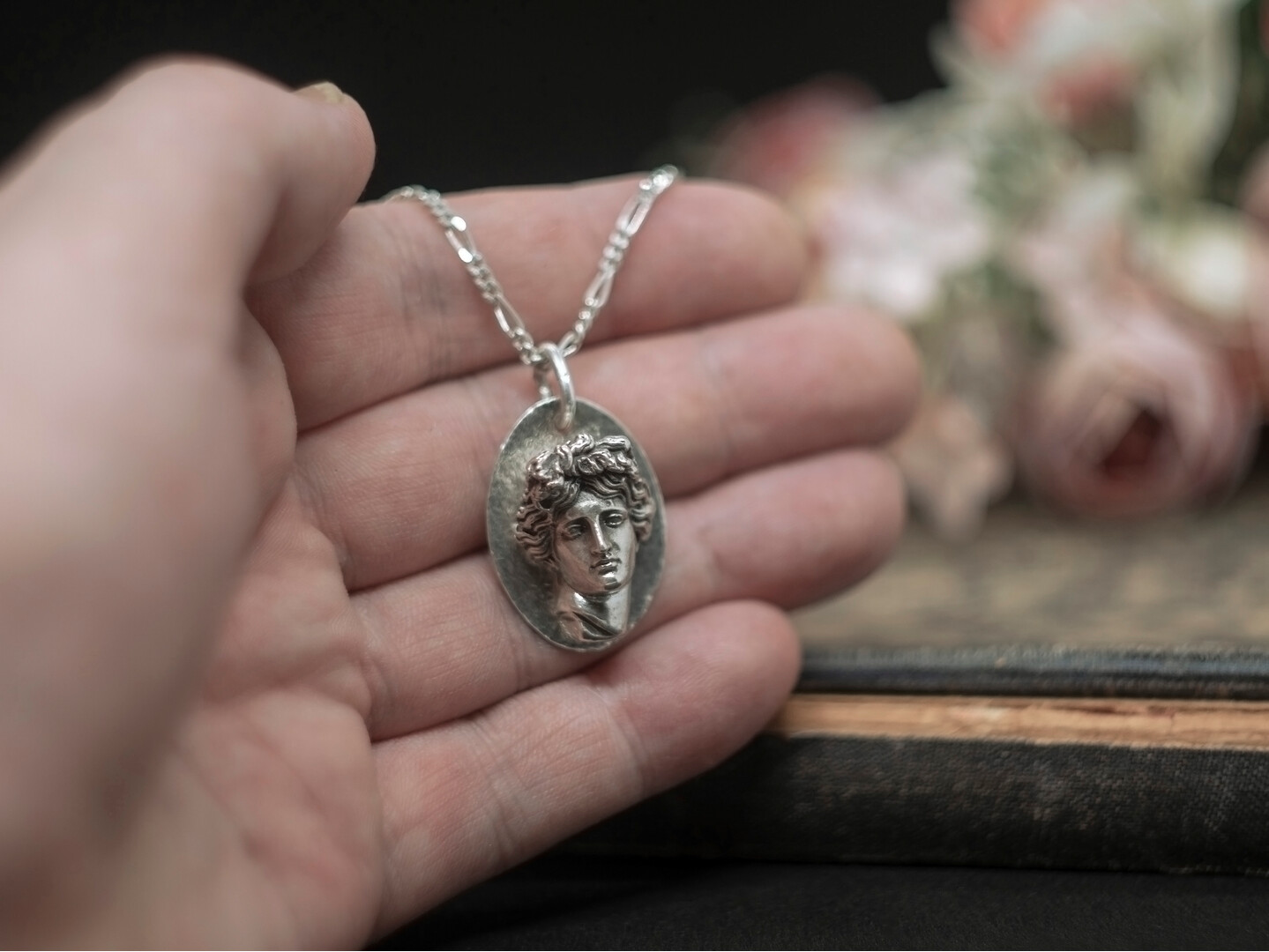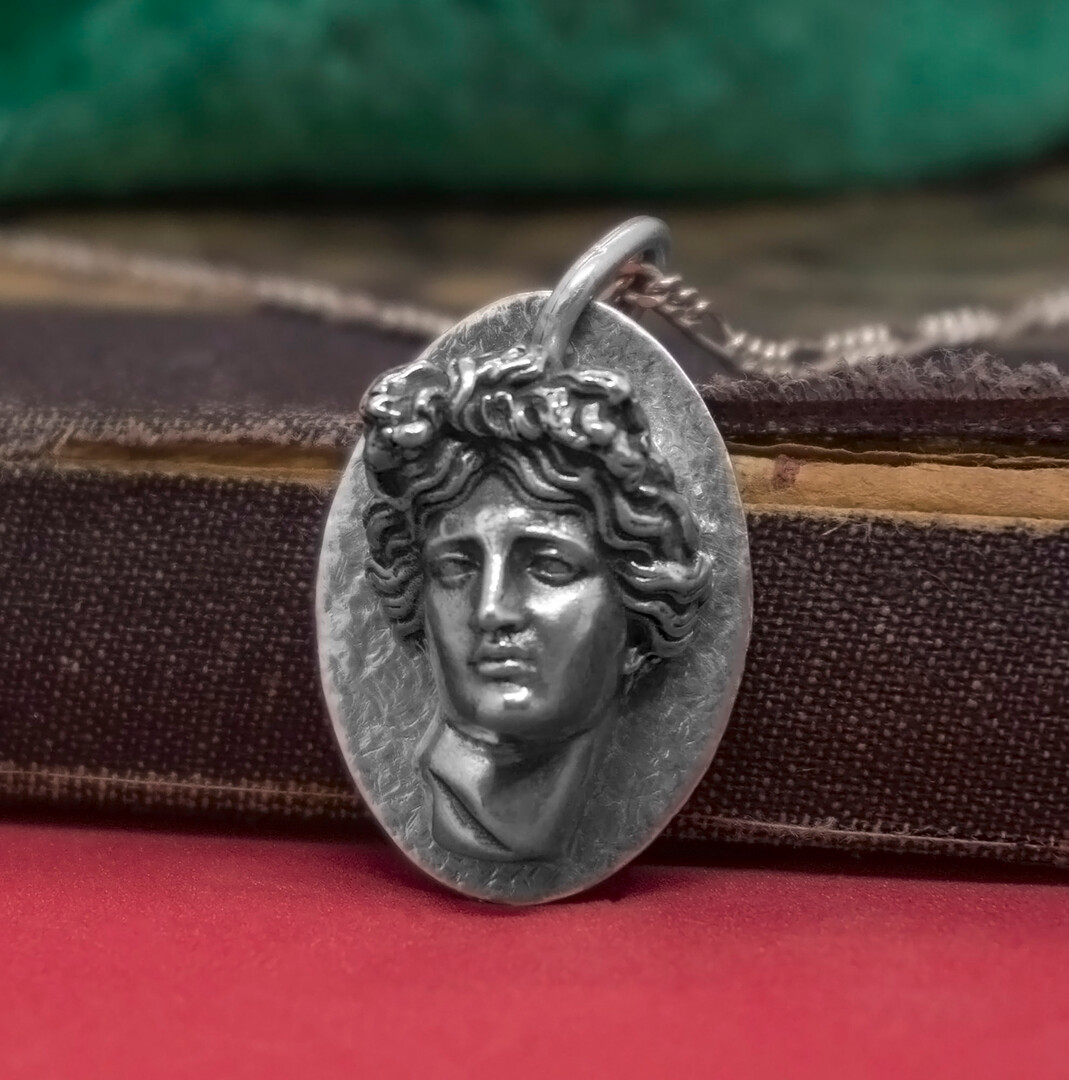 Apollo Silver Necklace, Apollo Pendant, Ancient Greek God Jewelry, Gift for Him, Gift for Her, God of Music and Dance, God of Beauty, Poetry