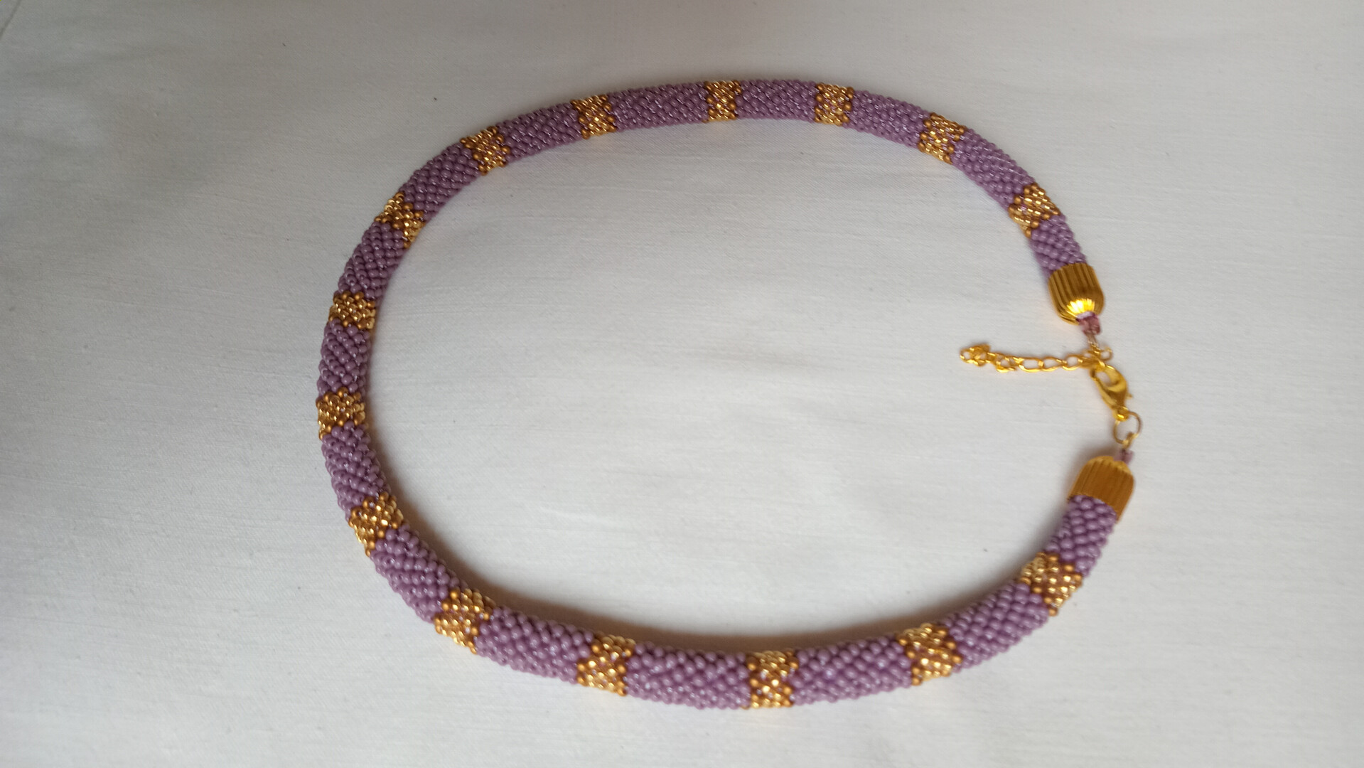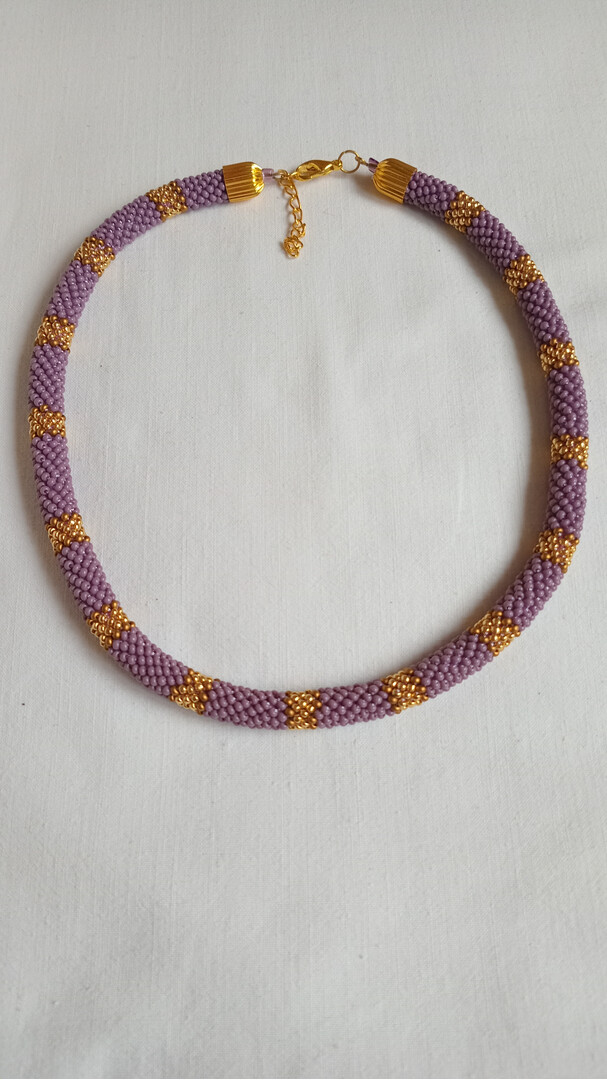 Dazzle in this unique handmade necklace featuring exquisite gray-lilac Czech beads and stunning Japanese gold accents. Elevate your outfit with a touch of elegance and sophistication. Perfect for adding a pop of color to any ensemble. Shop now and make a statement!