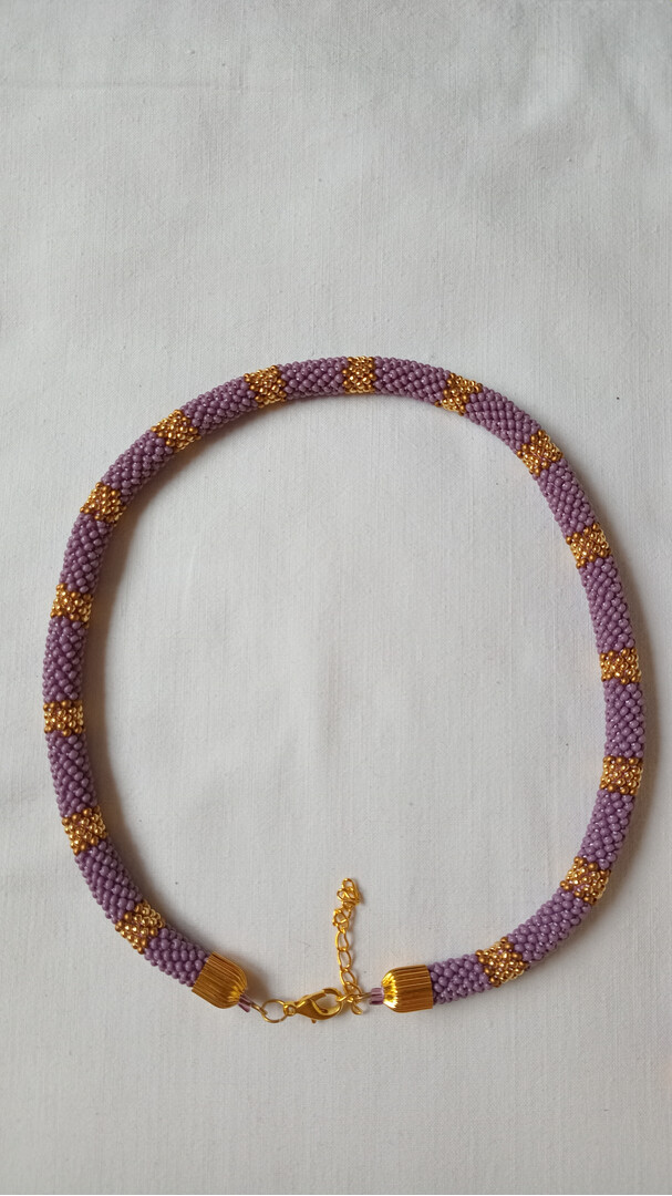 Handmade Gray-Lilac Czech Beads Necklace with Japanese Gold Accents