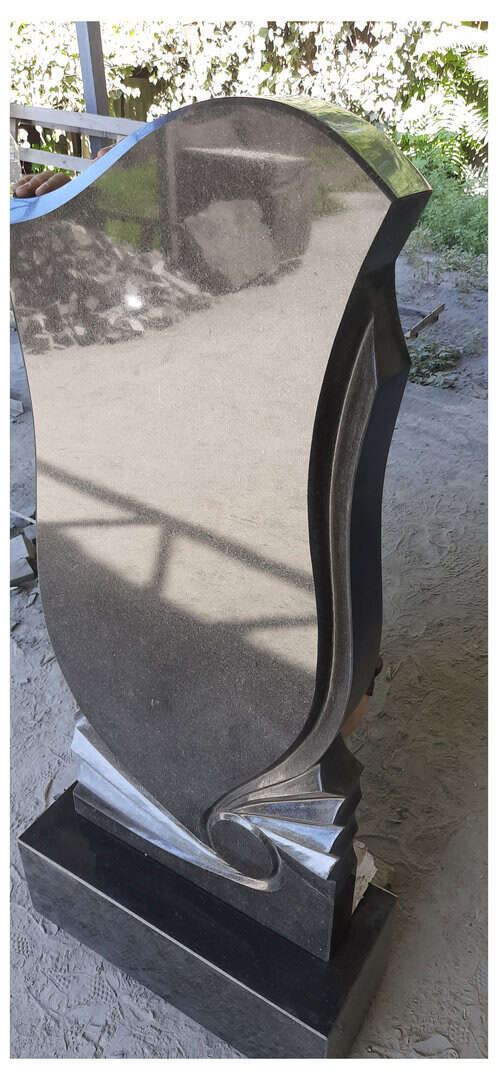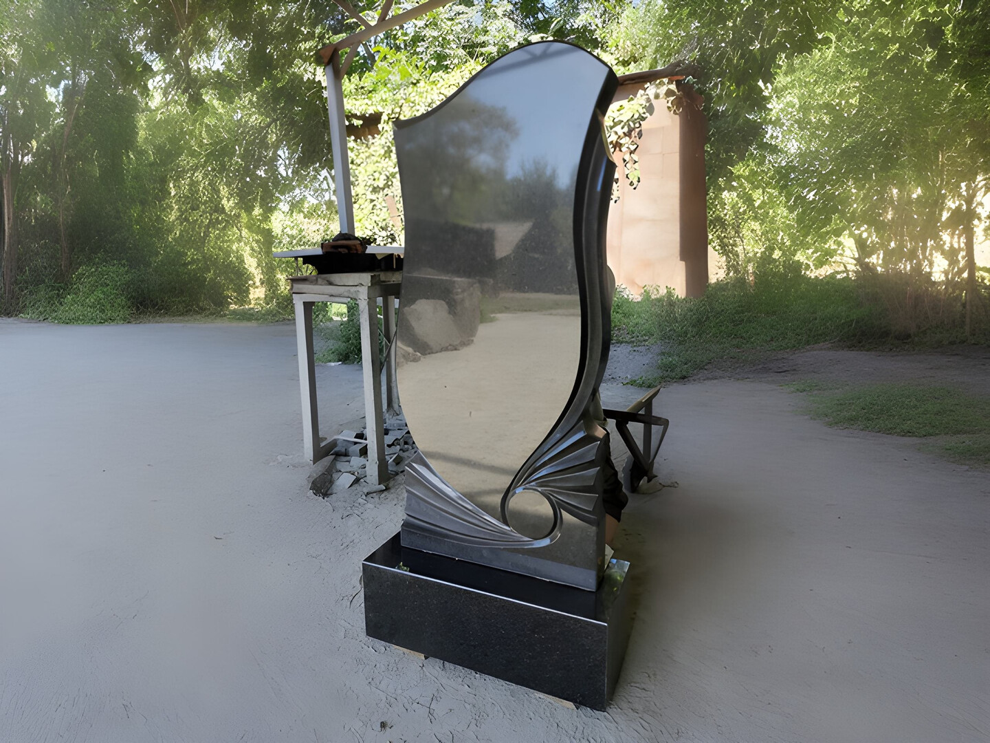 Honor your loved one with a timeless tribute—this elegant headstone is handcrafted from 100% solid black granite and features beautifully curved engraving work.
