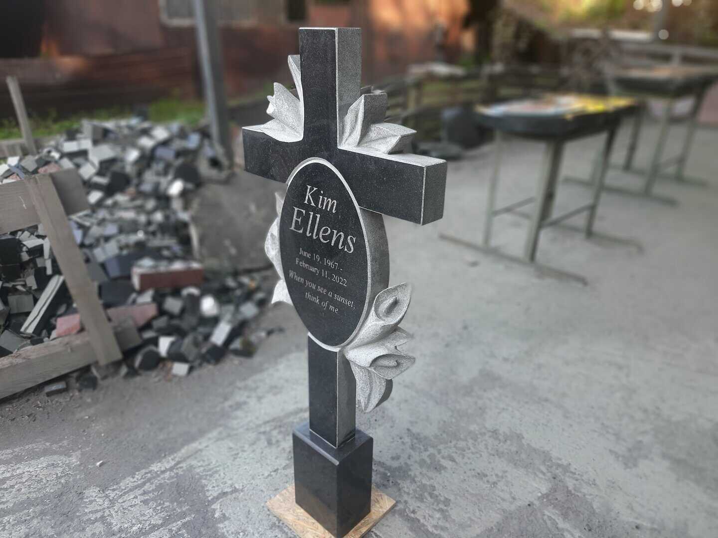 Honor your loved one with a timeless and elegant black granite hand-carved headstone.