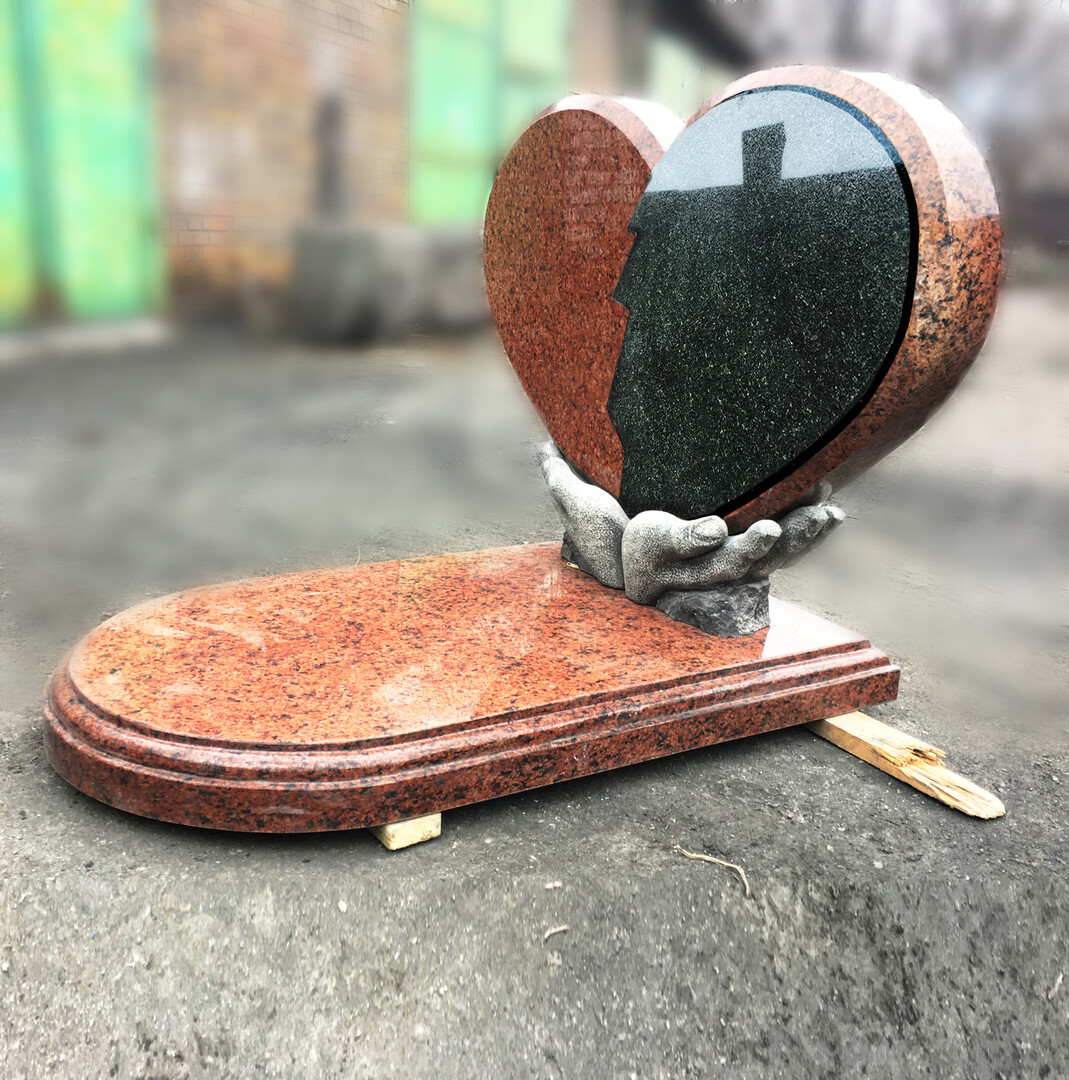 Hand-carved headstone from black and red granite (TOP + BASE)