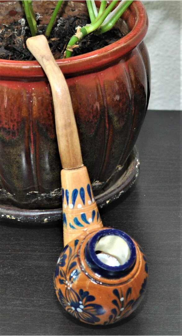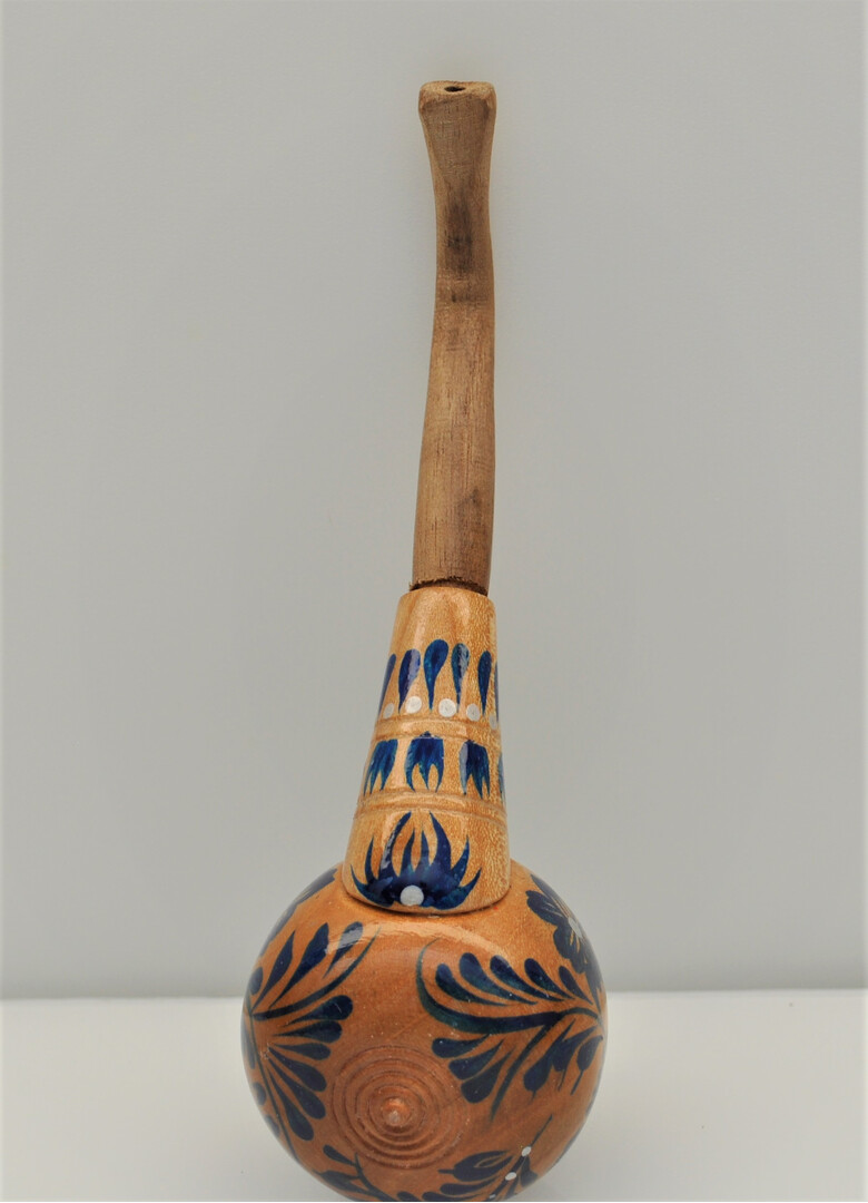 The wooden smoking pipe is made of wood and painted by hand with paints and covered with several layers of protective varnish.