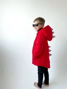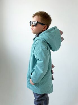We present to your attention our new product. Children's jacket, elongated in the style of Dino Features of our jackets -NOT thick. Pleasant to the touch outside and inside. -Fleece lining on the front, back and hood. Sliding lining in the sleeves for convenience and comfortable wearing. -Fleece pockets. Quickly warms hands and very pleasant to the touch. -Hood with adjustable elastic on both sides. -The jacket is elongated and completely covers the bottom of the child. -Reflective spikes on the back and hood. Temperature range from -7 to +10