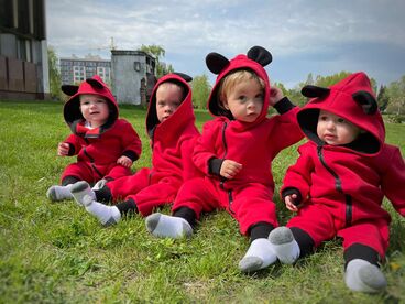 This is the most favorite thing in the wardrobe that you don’t want to take off. Very comfortable, soft and high quality baby overalls. We are a manufacturer, so you can order each model in different colors and sizes from 56-62 to 86-92. Hood lining and accessories - BLACK. Composition 95% cotton Neck processed The seam on the back does not interfere with the child, as it is stitched. Size for child's height *price includes romper only. If you need a set of romper+bodysuit+hat, write to me! There are different colors in the ran)ge.      red, blue, light beige, dark beige, violet, pink, yellow, light gray, dark gray, crimson, menthol, mustard. The overalls are suitable for year-round use, as the temperature regime is completely dependent on additional clothing underneath or on top. You can also wear an additional suit under it when the temperature outside approaches 0 degrees. The jumpsuit is comfortable up to +18 degrees, but nevertheless it is affected by weather conditions ... rain, wind, humidity, cloudiness or sunshine. In any case, you attribute this to at least 3 of the 4 seasons. There are cuffs that allow you to build up and there will be more space above your head than the indicated increase. Wash at 30 degrees, spin 800 rpm, delicate wash, tumble dry. Our fabrics do not shed and do not form pellets on clothes ................... I love my job and appreciate every client. We work with quality materials. Only positive feedback about work since 2015 on other online sales sites. Here you will find only quality, convenience, pleasant communication and positive emotions! The product looks better in real life than in the photo. Welcome! Please note that there is a maximum delivery time. We try to minimize them as much as possible and send the order as soon as possible. Perhaps your color and size is already in stock and delivery will take up to 3 days) Have a nice day everyone!