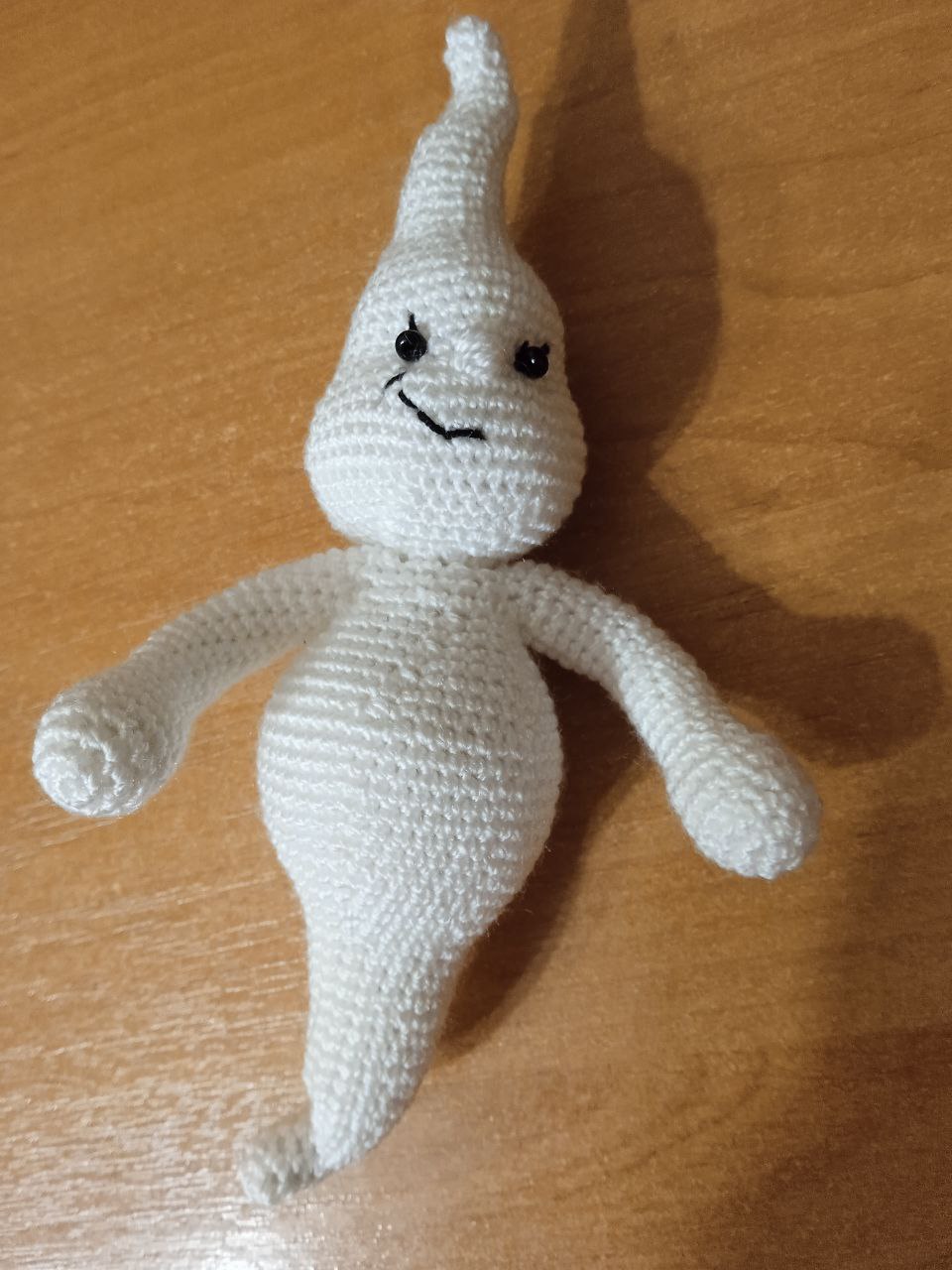 The ghost's facial expression can be different if desired: cheerful, sad, angry or as in the photo.