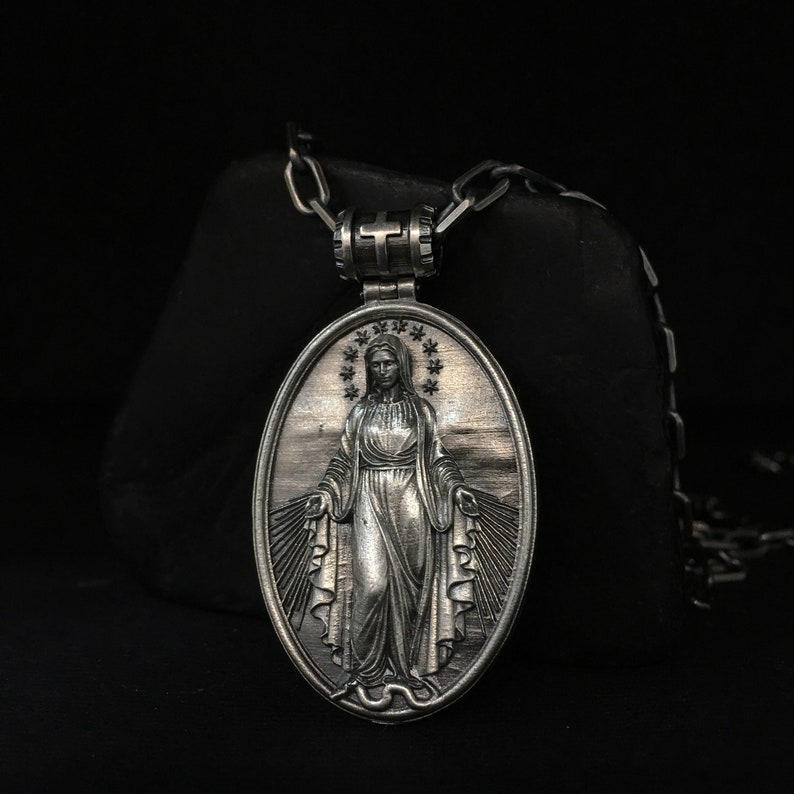 Personalized Virgin Mary Men's Necklace Miracolus Virgin Mary