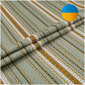 Polyester 50% Acrylic 45% Cotton 5% Type of interlacing: combined Type of pattern : fabric ornament. Width : 150 cm. The lines of the ornament are 1.5 meters wide. If you need more fabric than what is in stock, please contact me for the actual amount. Shipping to USA: 3-4 weeks to buyer's door by USPS/UPS. Delivery to other countries: 3-6 weeks, in most cases to the buyer's door.