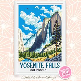 Cross stitch pattern - Yosemite falls national park as poster cross stitch. This nature landscape is modern and simple. Great decoration for home and office. Nature cross stitch with waterfall and mountain landscape nature lovers will appreciate. Those who have visited this unique national park at least once will definitely want to have a Yosemite poster at home as a reminder of their trip. The diagrams are prepared for instant download PDF. Fabric: 16 count White Aida Stitches: 112 x 172 Size: 7.00 x 10.75 inches or 17.78 x 27.30 cm Colours: 22 (DMC) This PDF pattern Includes: - Pattern in black and white symbol on 1, 4 and 9 pages, - Pattern in color blocks and symbols on 1 and 4 pages, - List of DMC colors you will need and thread length. ATTENTION! For personal use only! All my patterns are not for commercial using. You may not resold files as is, or with minor changes. The product may not be used in any way whatsoever in which you charge money, collect fees, or receive any form of remuneration. Also the representation on any free web resource is prohibited. Please understand me as the owner. Please note this is a PDF PATTERN ONLY! No fabric, floss, or other materials are included in the listing. If you have any questions about the purchased product, individual order of cross-stitch patterns, downloading files in PDF format - write to me in a private message. I don't accept returns, exchanges, or cancellations. But please contact me if you have any problems with your order. Thank you for visiting my store. I hope you enjoyed it here :) I wish you easy embroidery!