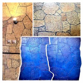 Set of Polyurethane Mat Stamps GOLDEN STONE (thin)". S et of 2 stamps. Polyurethane die for vertical printing on concrete and plaster. Can be used for printing on concrete, gypsum and cement plasters, adhesives and putties, walls, etc. Flexible polyurethane stamp is specially designed to create the most realistic stone textures on concreteand plaster surfaces, realistic stone textures on concrete and plastered surfaces.  This stamp, allows you to get the effect of natural granite with all its unique features, such as such as uneven, features, inclusions and cracks that make the surface look like a natural material. The polyurethane texture ensures longevity and efficiency, making it a cost-effective choice for DIY enthusiasts and professionals alike. Brand polyurethane - ERACAST; Hardness Shore - 70-80A. Benefits of polyurethane stamp: ▶ Detailed texture: each stamp captures the unique texture of granite, including natural cracks, irregularities and distinctive flecks, making the surface look like real stone. ▶ High-quality material: stamps are made of high-quality polyurethane, which provides durability and resistance to wear and tear, as well as excellent texture reproduction.  ▶ Corrosion resistant: Ideal for use in a variety of environments. ▶ Abrasion Resistant and High Performance: Provides long term effective use. ▶ Flexibility and elasticity: the flexible shape of the stamps allows you to easily apply texture to a variety of surfaces, maintaining the clarity of the pattern even in difficult areas. ▶ Versatile: suitable for concrete, gypsum and cement plasters, adhesives, putties and other building materials. ▶ Easy to use: thanks to ergonomic handles, the stamps are easy to fix and manipulate during work, which allows you to create high-quality impressions even on large areas. Simplifies the stamping process. Kit dimensions: 1250 х 850 mm | 49,21 x 33,46 Inches. This stamp set is a modified analog of the product - Product ID: XT686540 (for horizontal printing on concrete and plaster). The difference is in the thickness and weight of the stamps. The GOLDEN STONE polyurethane stamp set (thin) is thinner and lighter and is designed for vertical printing on concrete and plaster. The polyurethane stamp is ideal for creating decorative elements on facades, paving slabs,  walls and other concrete structures. With its high precision and detail, you can easily recreate the effect of natural stone, giving your project a sophisticated look. Upgrade your concrete projects with our polyurethane stamps – an all-in-one solution for concrete printing,  decorative concrete, and more. Experience the perfect blend of quality, versatility, and affordability!