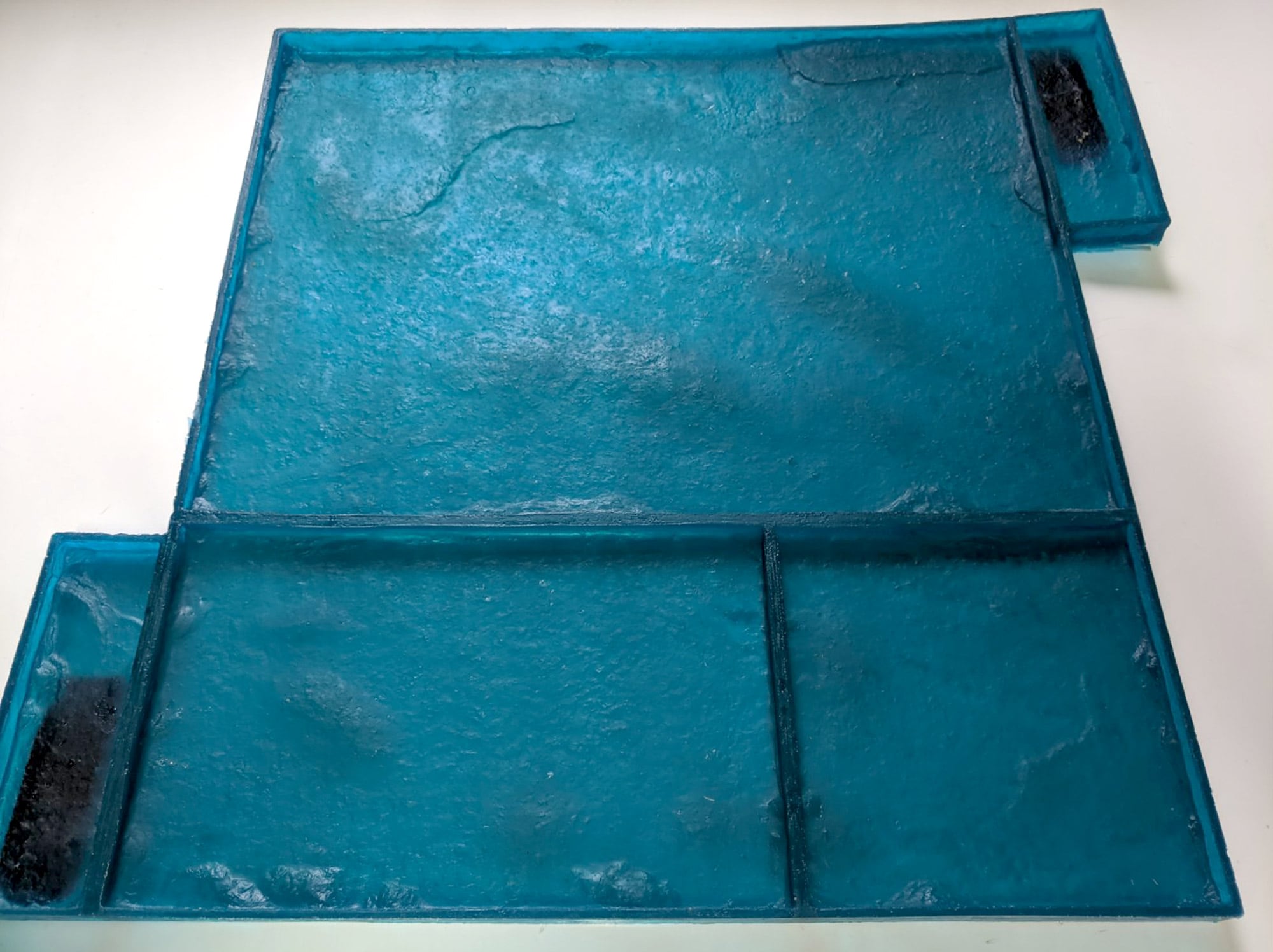 Polyurethane dies for horizontal printing on concrete and plaster.