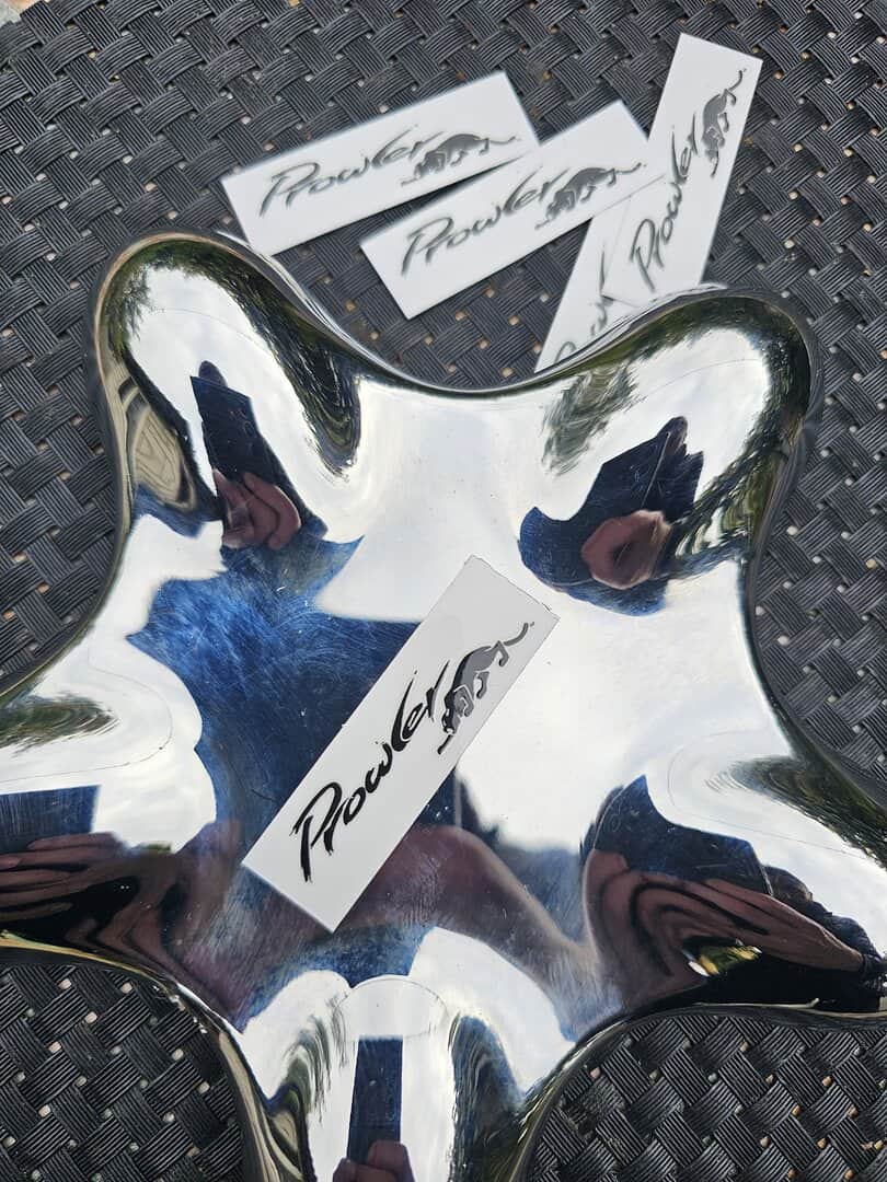 Set of Chrysler/Plymouth Prowler wheel center cap logo stickers. 5 pieces per set. High-quality, three-dimensional stickers on transparent transport film.