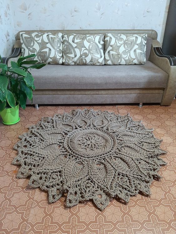 Round, crocheted rug, Handmade carpet - cocoa with milk, openwork rug for the nursery, bedside rug, rug for the hall.