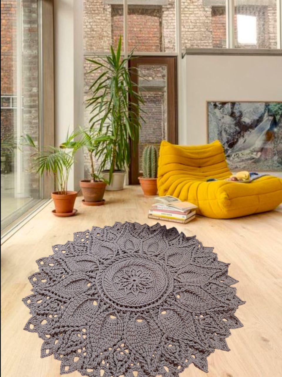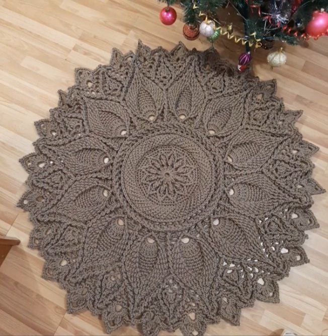 The rug, crocheted from thick polyester cord 5 mm, with a core, cocoa color, has many advantages:- they are very practical: they can be washed in a washing machine (20-30 degrees).