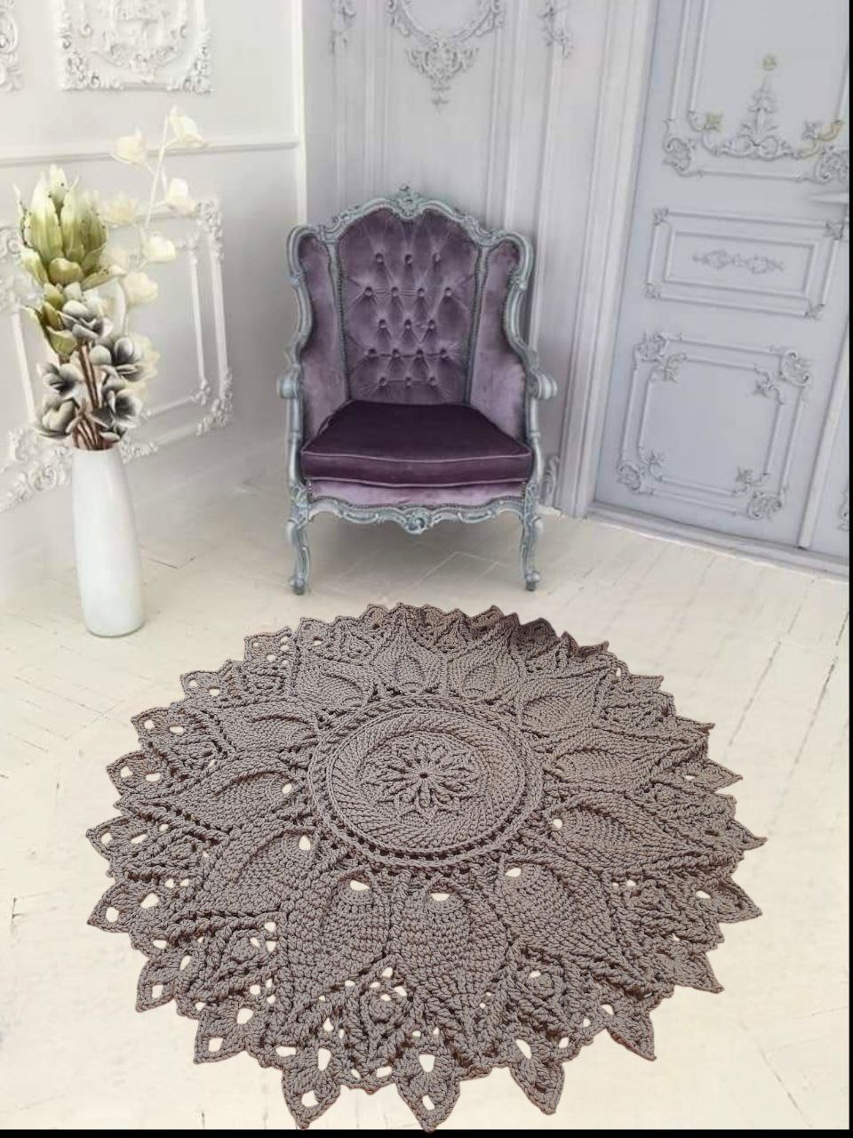 This handmade rug will fill your home with special coziness and warmth. It can be placed in the bedroom near the bed, in the living room, by the window, sofa or fireplace, in the crib, in the kitchen or in the bathroom.