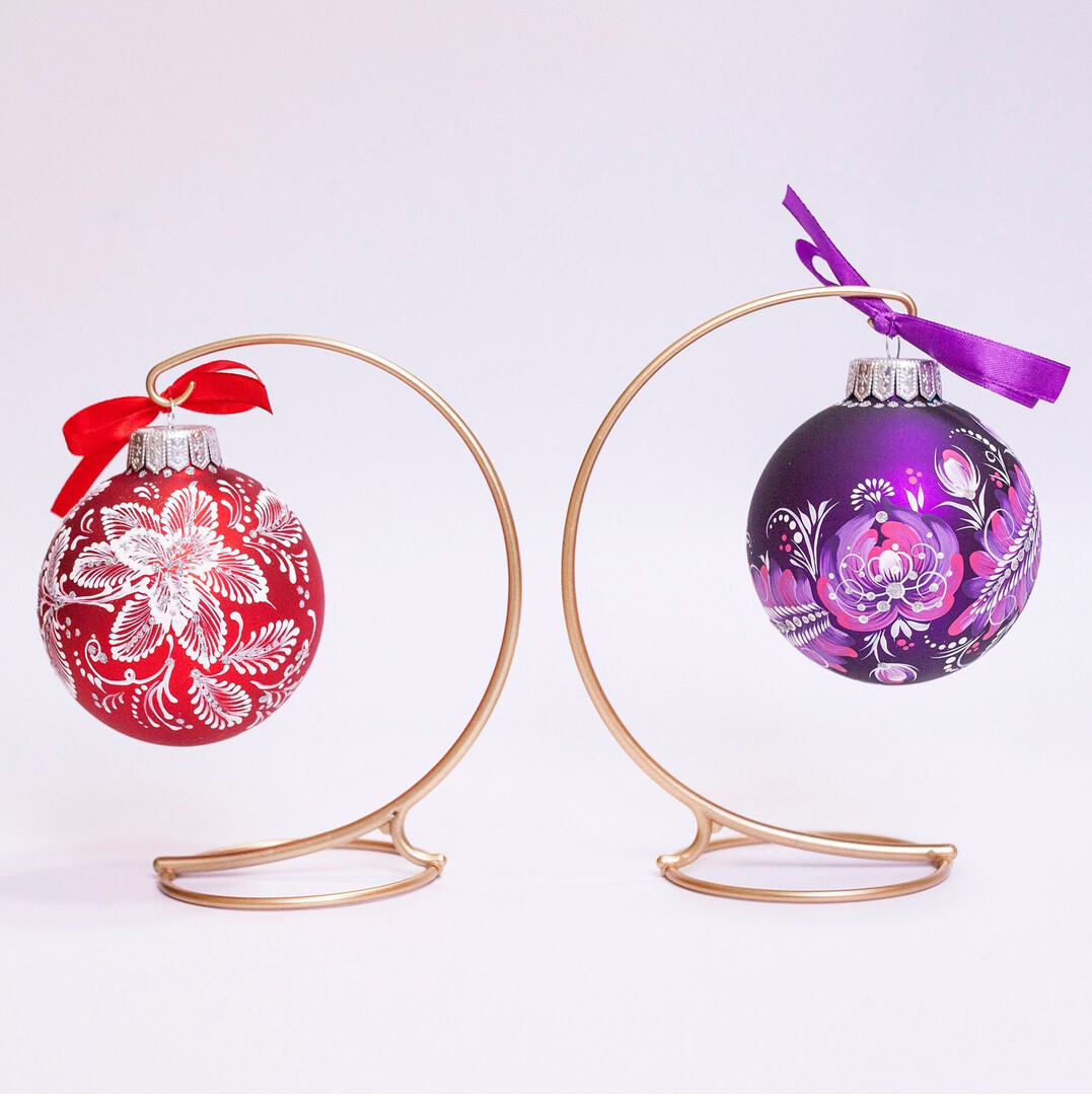 7.4” Tall Brushed Gold Ornament Holder Stand