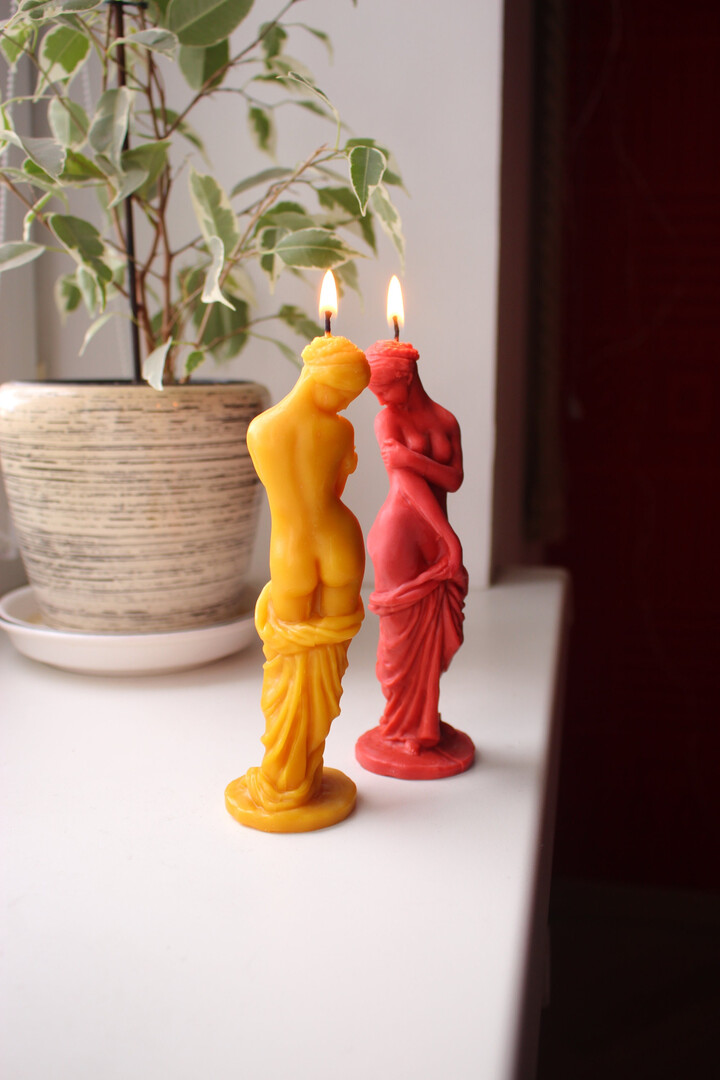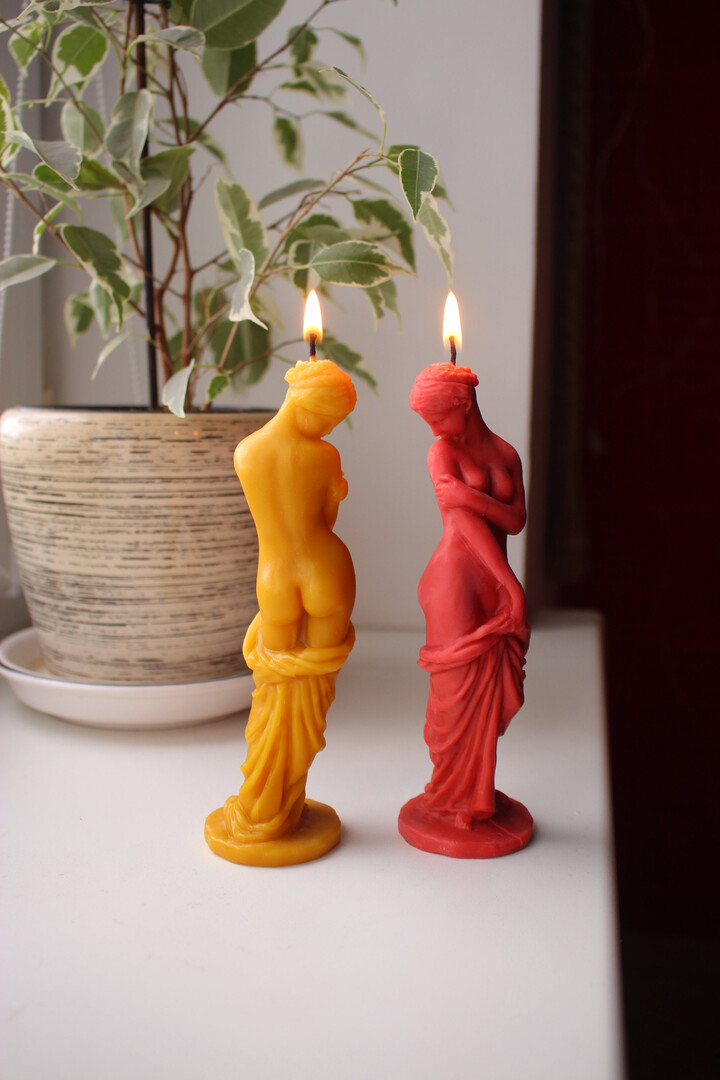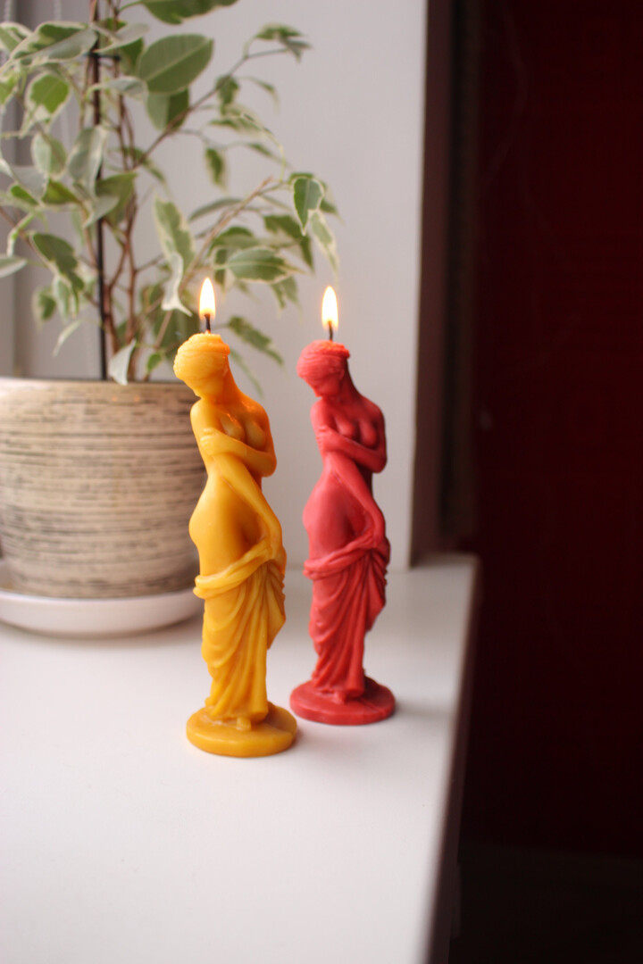 Set of 2 Body Candle, Beeswax Venus Candle, Women Bust Candle, Goddess Candle, Sculpture Candle