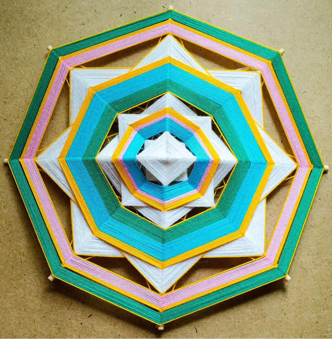 10.6 Inches (27 cm.) - 8 Sides - Wool Thread - Bamboo sticks.