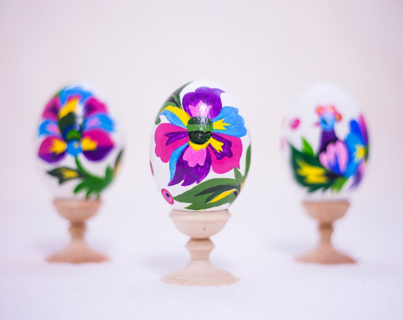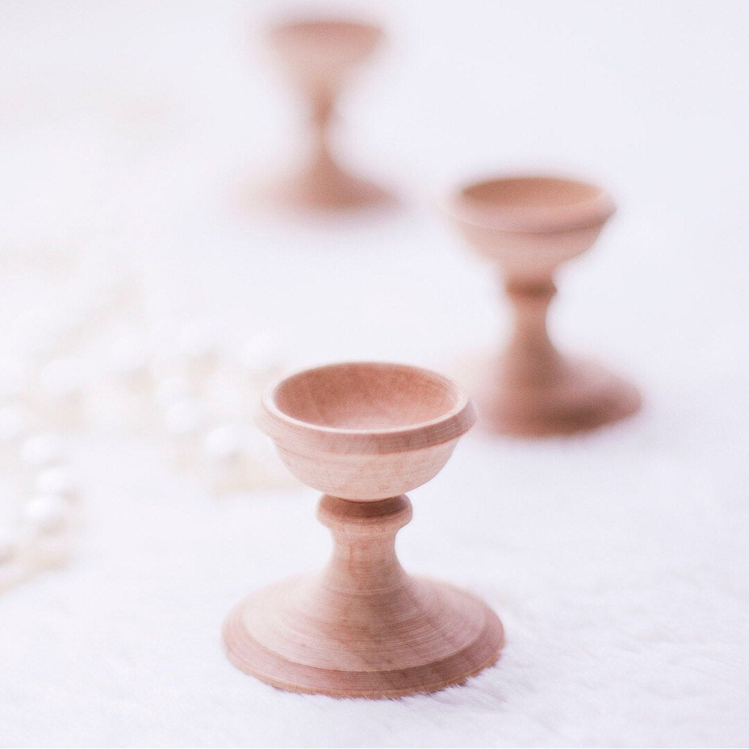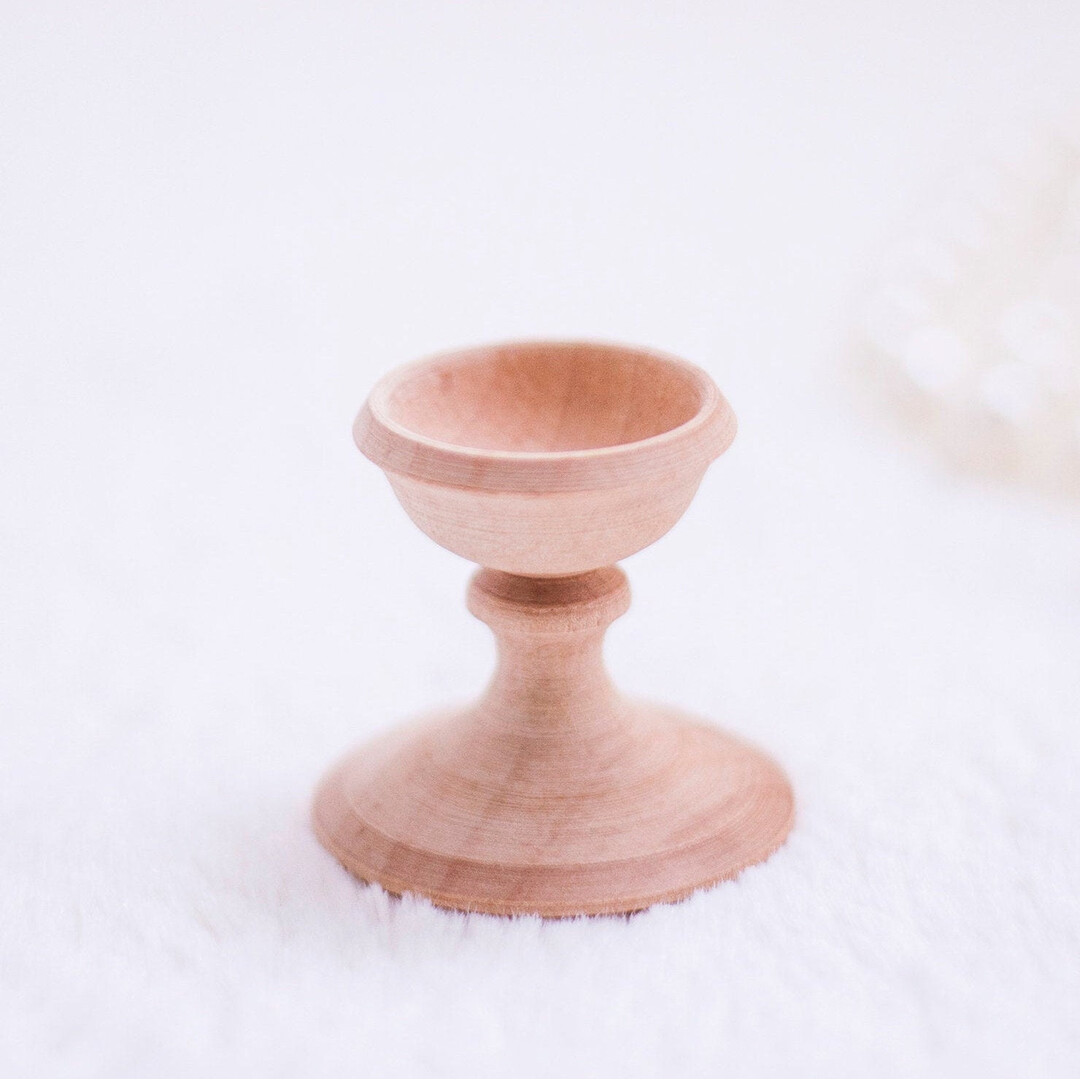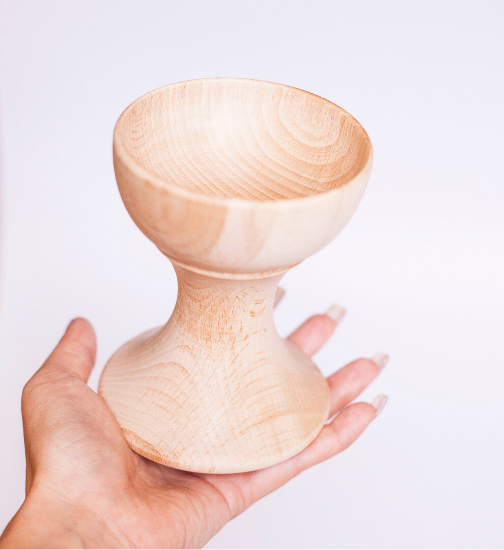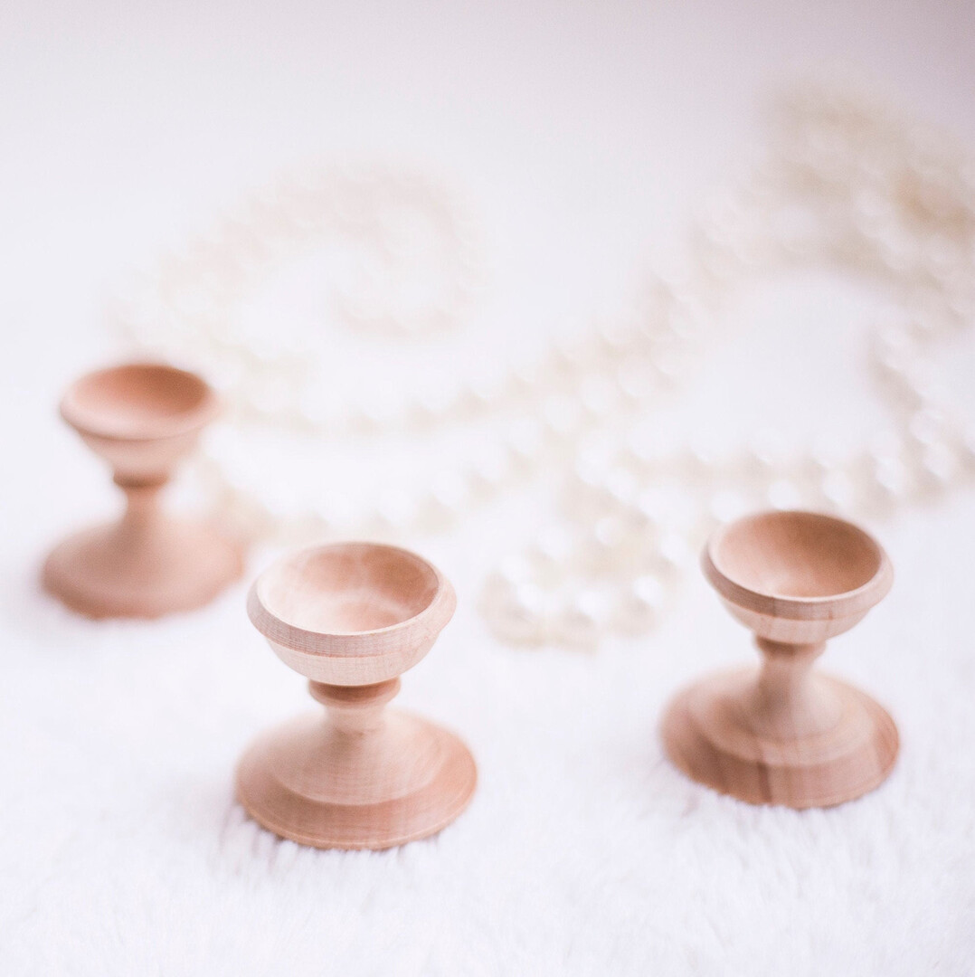 These beautiful wooden stands will accent any chicken- or goose-sized egg.
