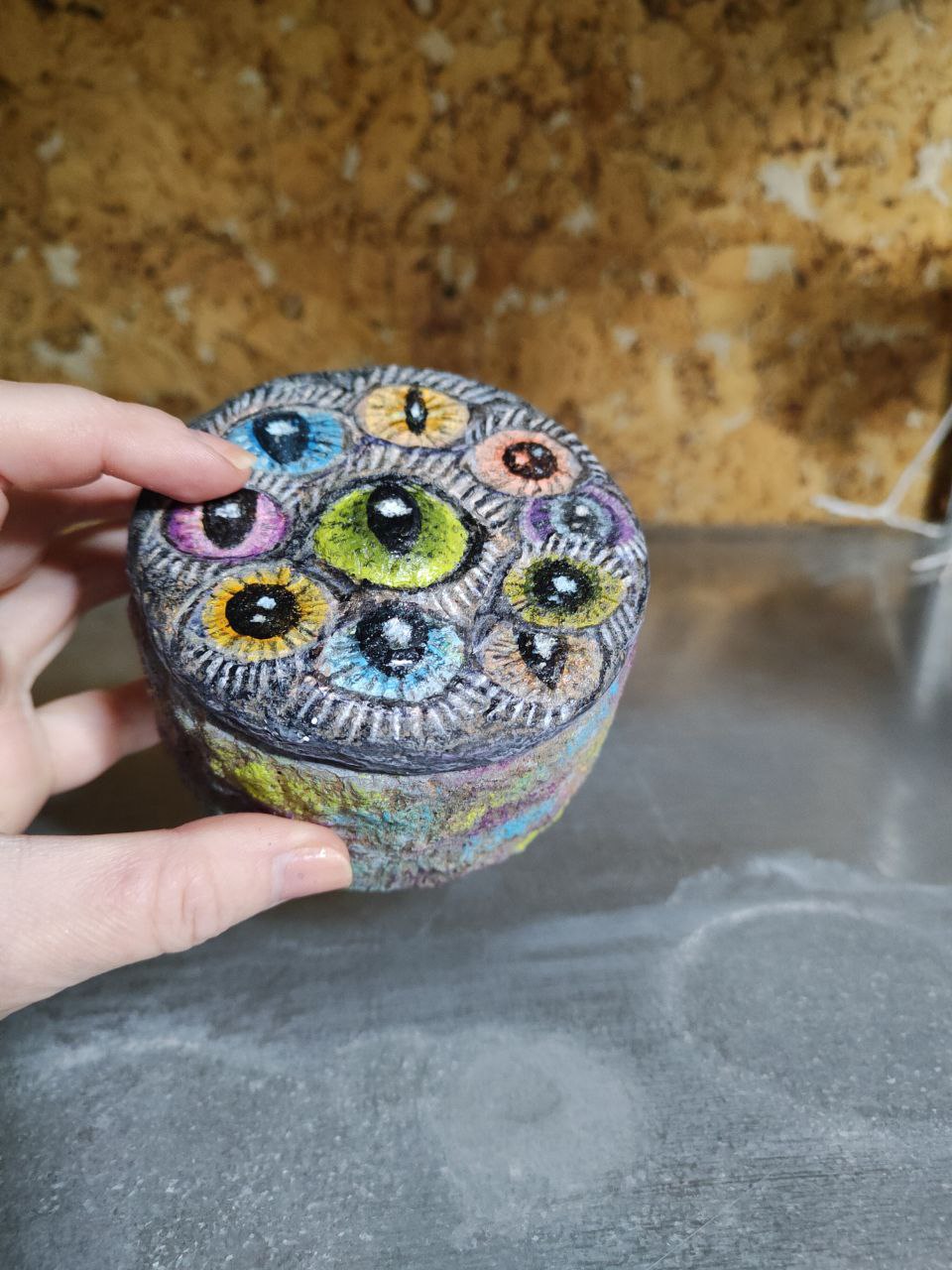 Eye box green,yellow, lots of eyes paper mache handmade for jewelry and trinkets, eco home decor