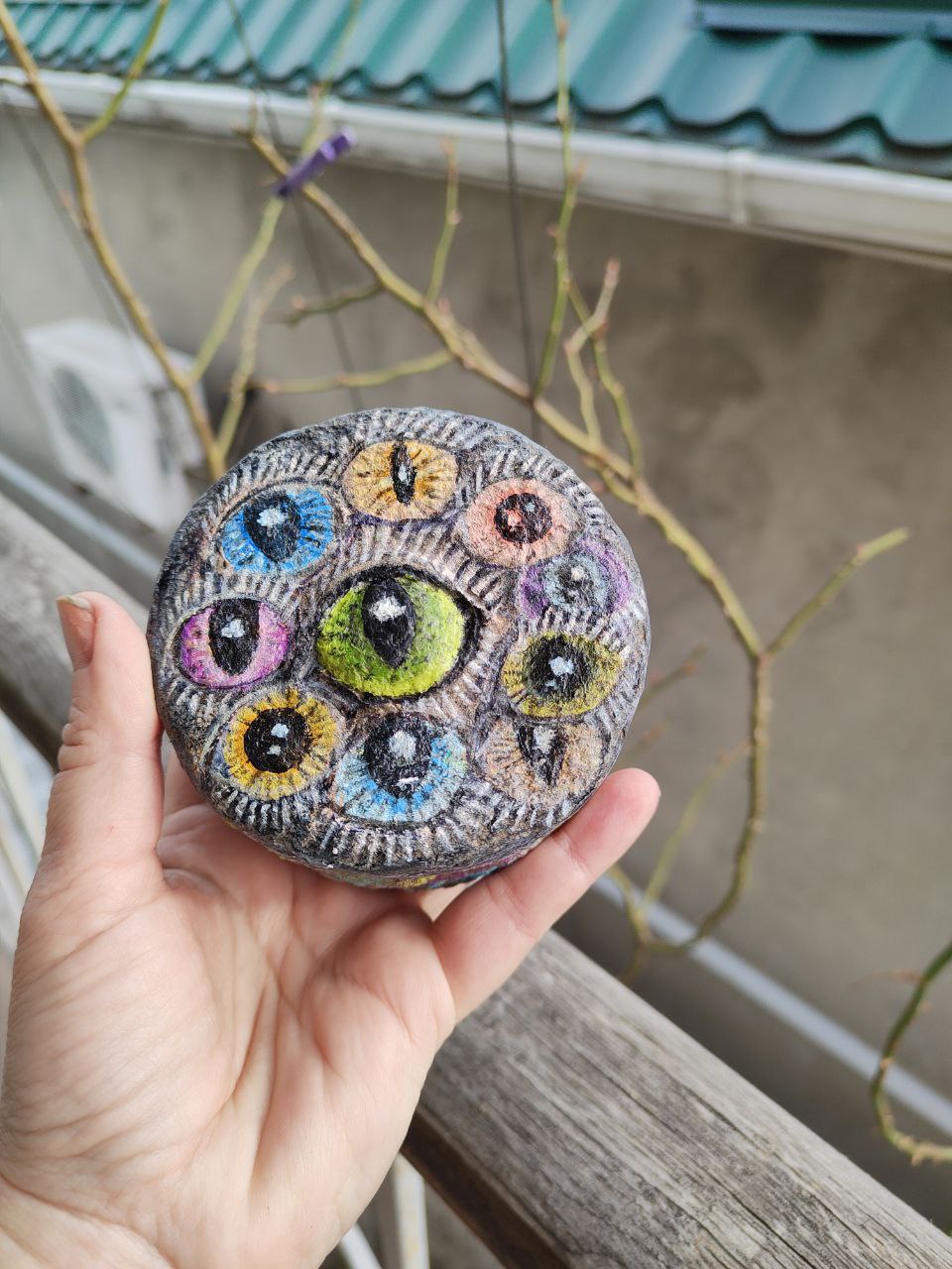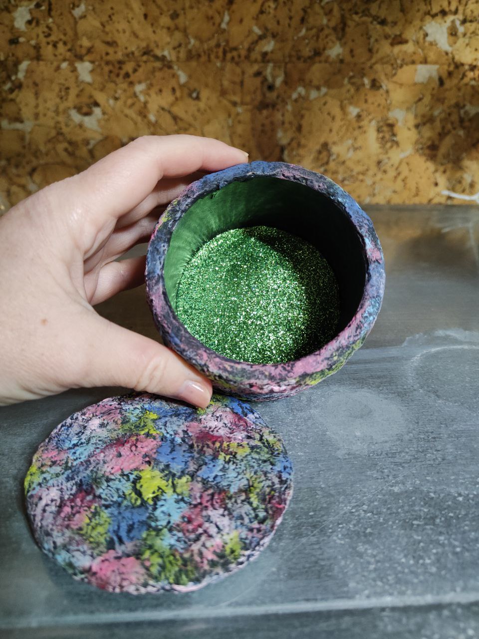 The product is created by me from recycled paper with the addition of PVA glue, painted with acrylic paints, acrylic varnish.