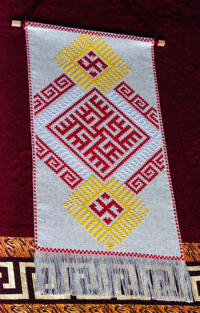 In the Centre - Odolen' Trava - The symbol, which was the main Obereg for protection against various diseases. The people believed that the illness on the person sends the evil forces, and the Double Fire Sign is capable of burning any pain and disease, cleanse the body and Soul.
