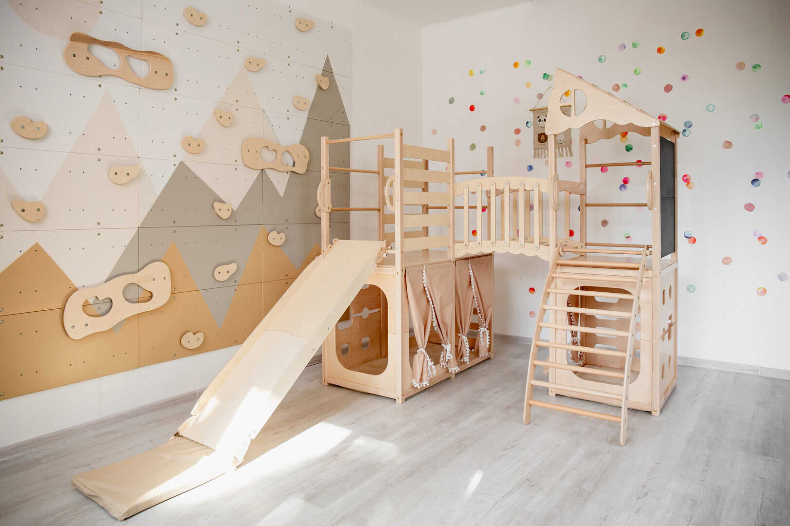 The Large Playground Climber with houses and climbing elements is a beneficial and engaging toy for kids aged 3 years to 8 years. With a maximum load capacity of 60 kg, this product is ideal for both active and calm creative play, promoting the development of gross motor skills and imagination.