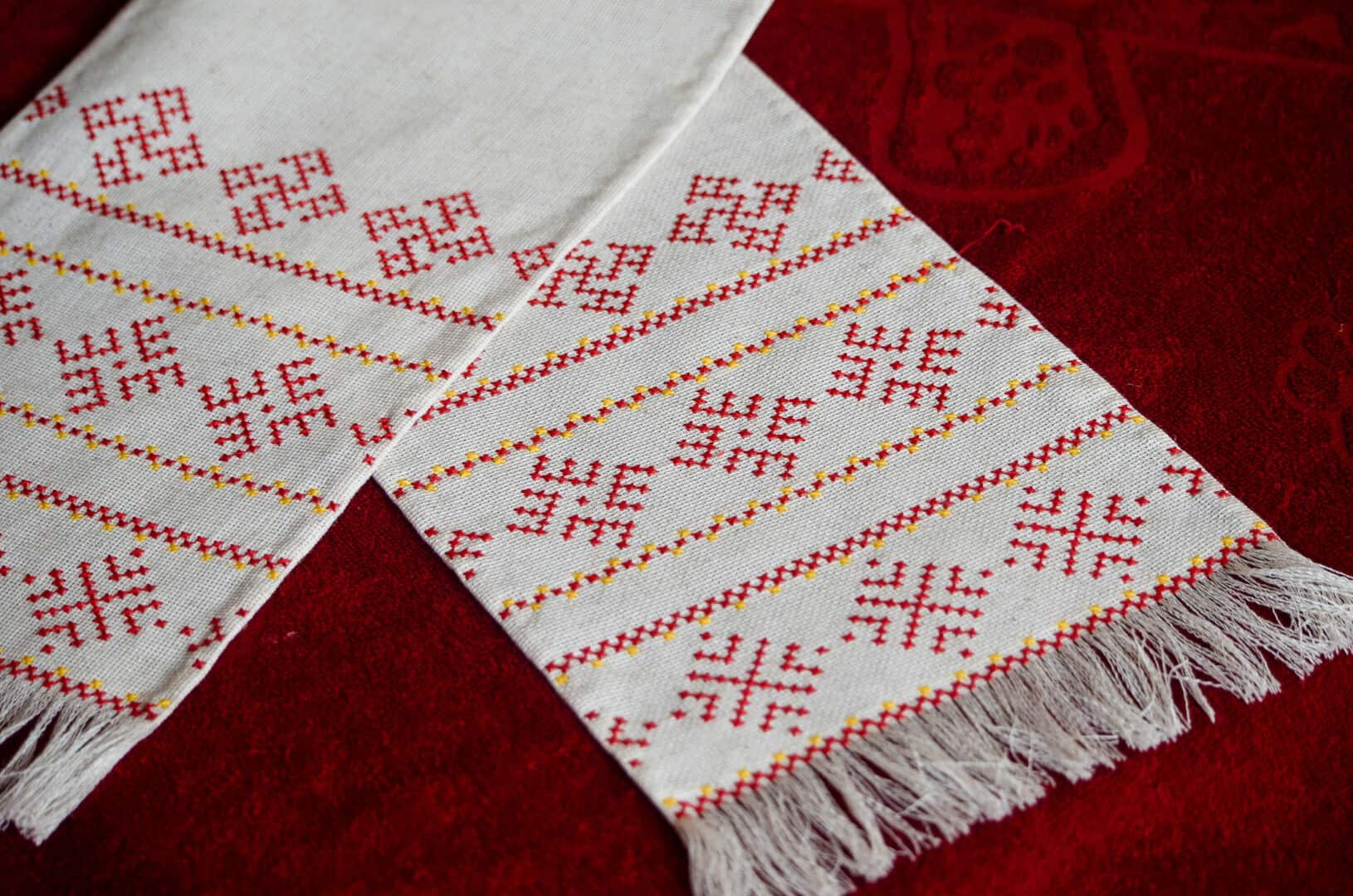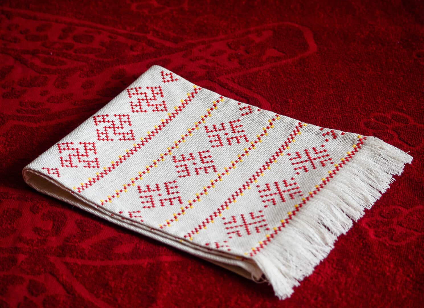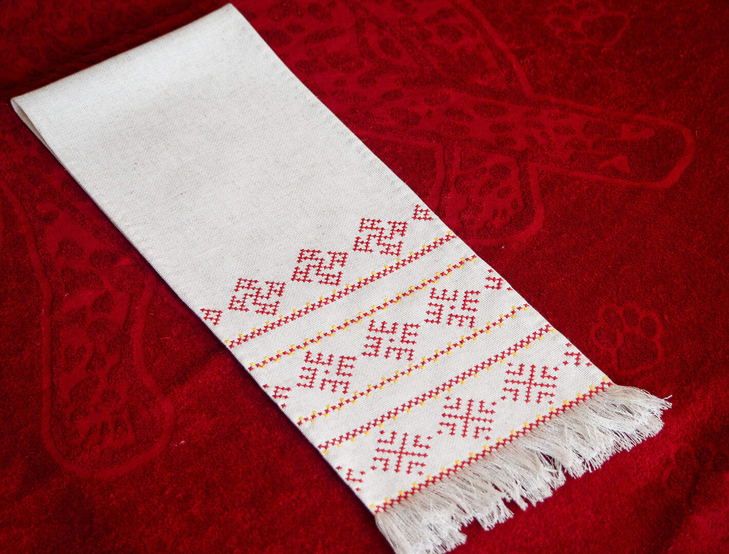 Towel embroidered cross without nodes linen fabric.