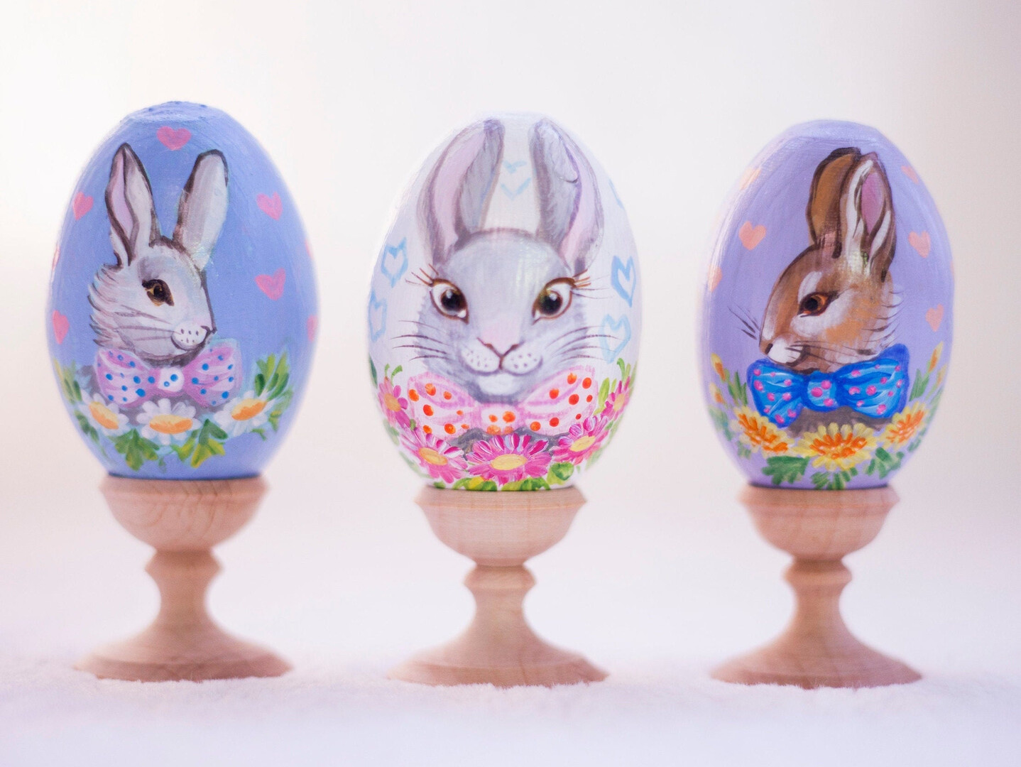 Personalized, Bunny with Pink Bow, Custom Wood Egg with Name, Easter Bunny Decor, Baby First Easter, Personalize Easter Basket Stuffer