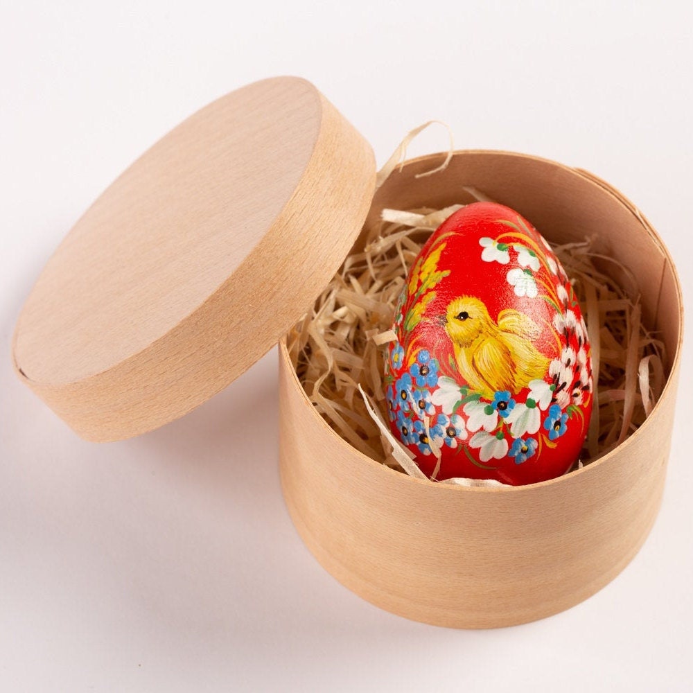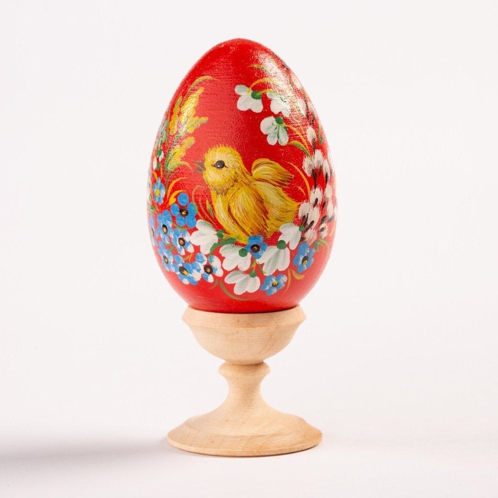 Pysanka Easter Egg, Red Hand Painted Wooden Egg with Yellow Chicken, Easter Basket Gifts, Red and Yellow Pysanky Eggs, Custom Spring Decor