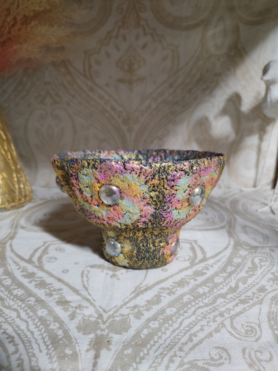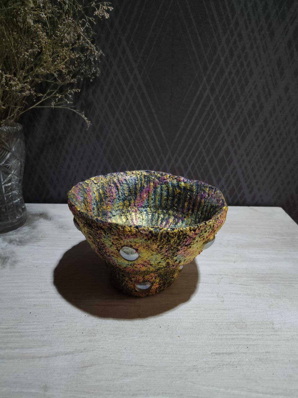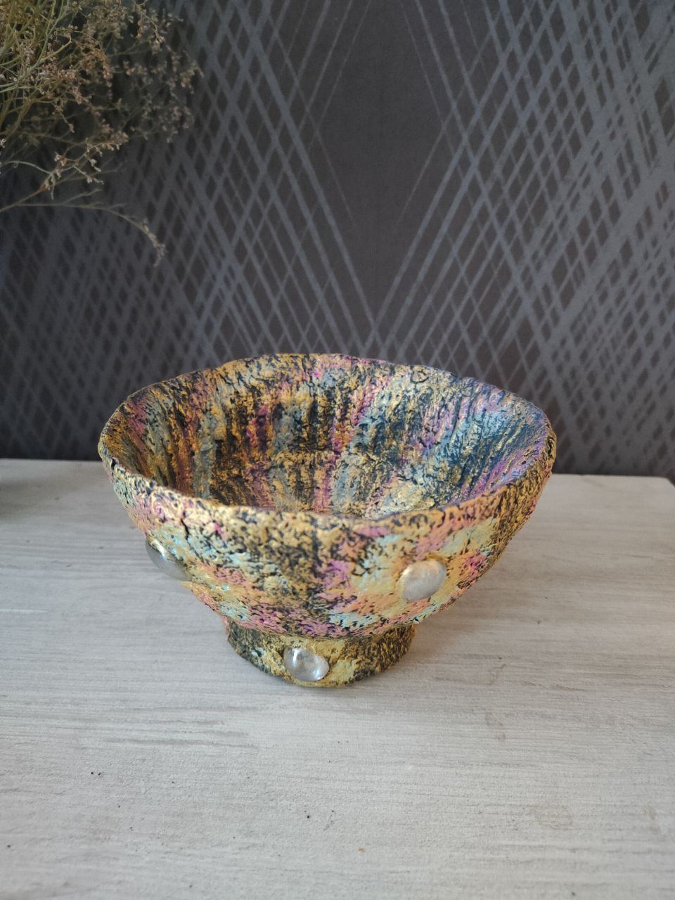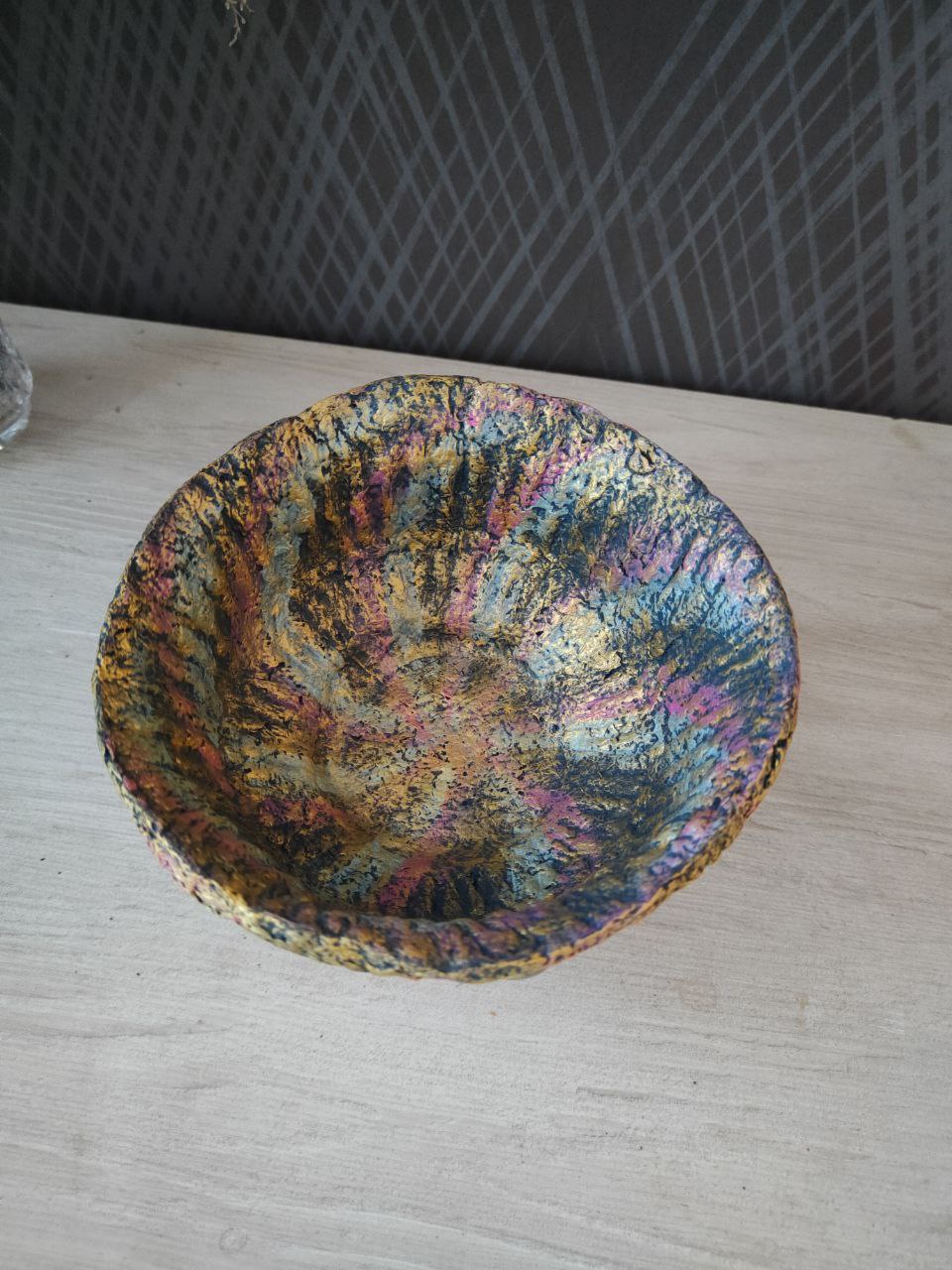 Unique papier mache dish, handmade plate. Each item is unique, exact repetition is impossible. The items are painted with acrylic paints and coated with acrylic varnish. They can be wiped clean with a damp cloth. Do not dip in water, chew, pour water, wash in dishwasher. Even if you get water on the plate, or fall into the water, nothing bad will happen, wipe it off and wipe off the water. Safe for Health.