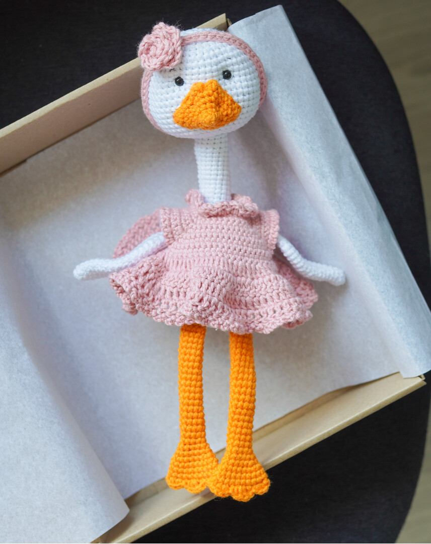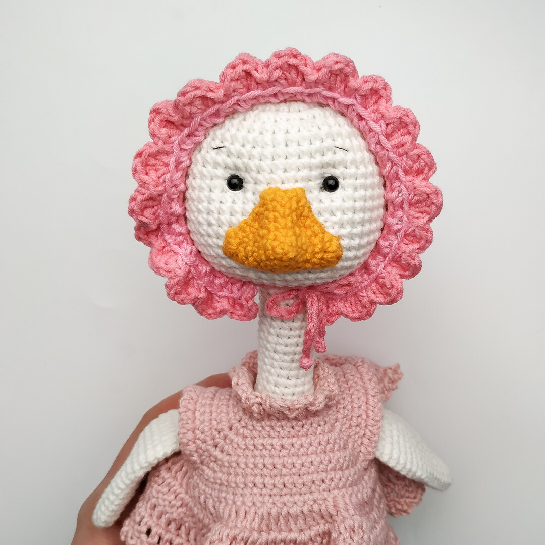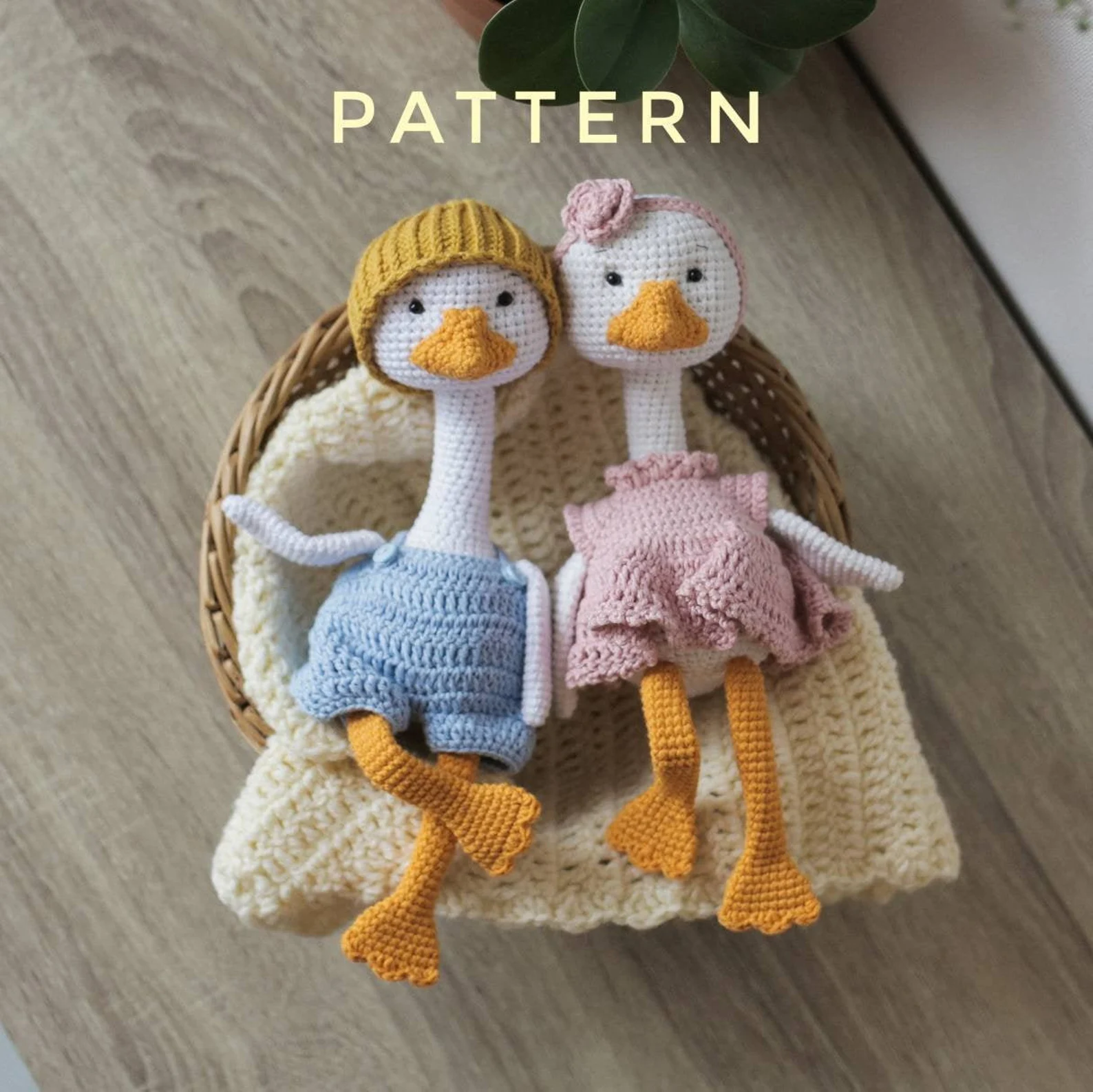 This is a DIGITAL PATTERN in English on crochet a goose toy in dress and pants, and hat in pdf format, this is not a finished toy.