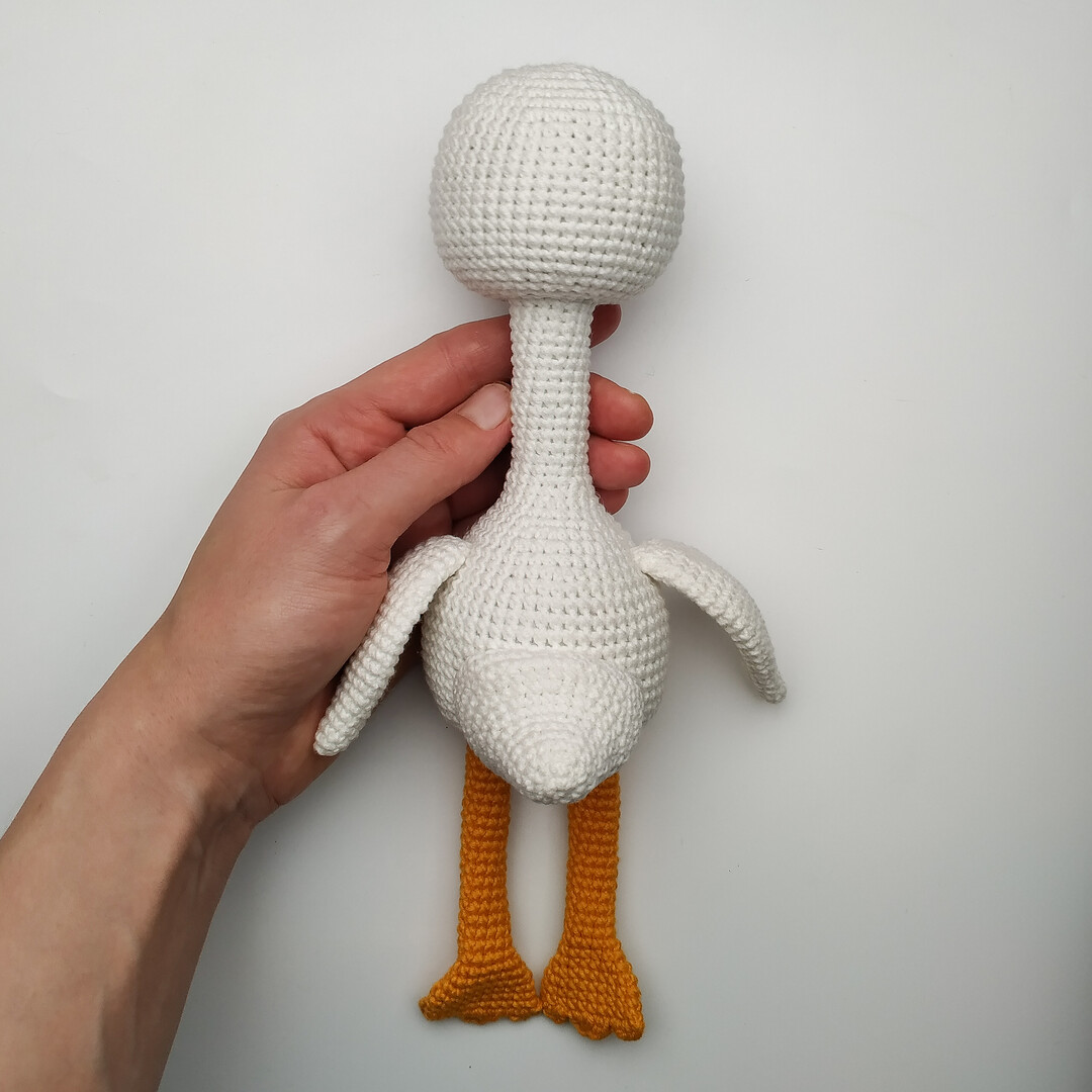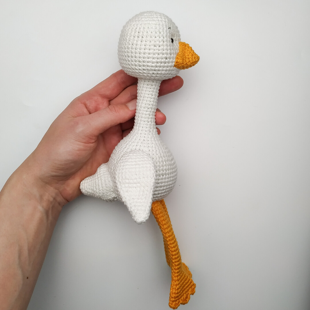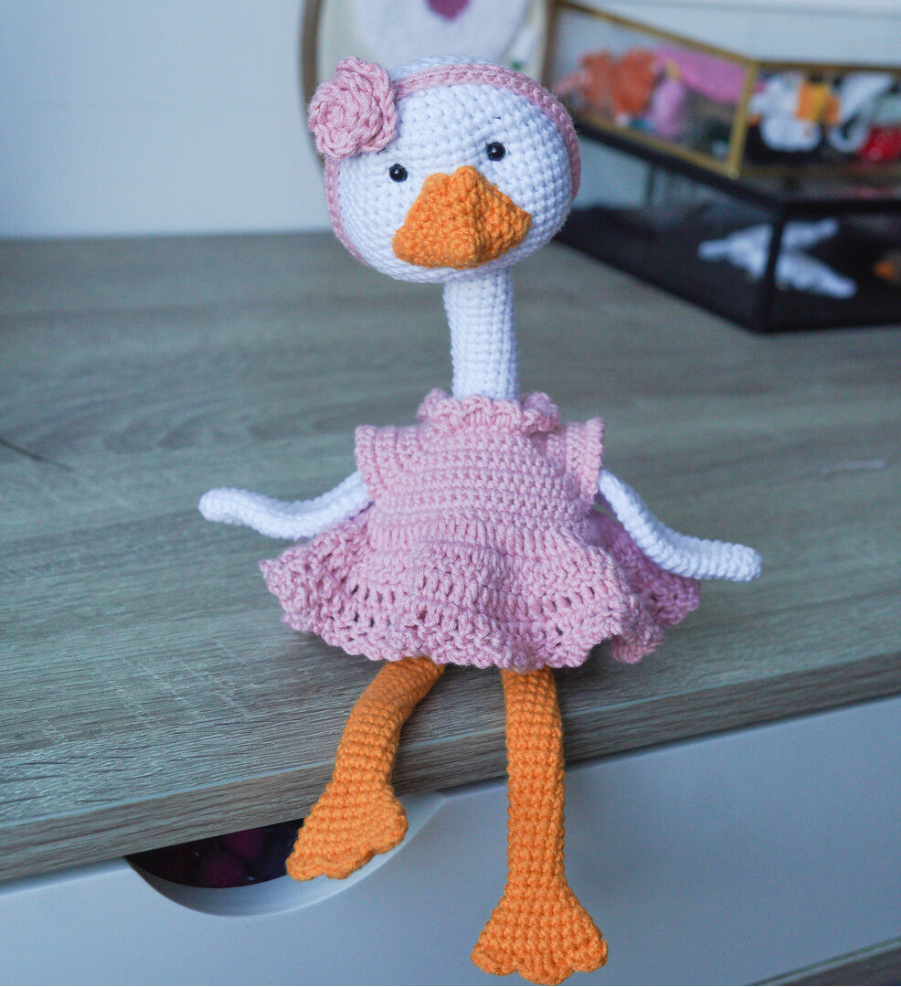 This is a DIGITAL PATTERN in English on crochet a goose toy in dress and pants, and hat in pdf format, this is not a finished toy.