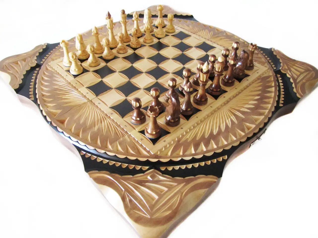 Exclusive Backgammon Chess #7 Handmade Wood Carving Board Games