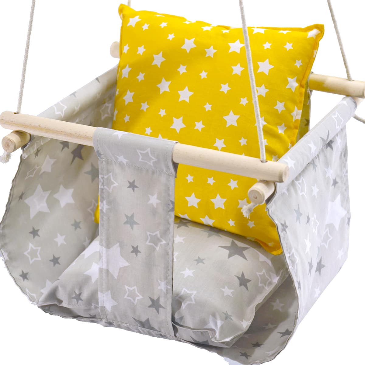 Toddler room Stars decor Indoor Wooden swing for Toddler Birthday Gift Baby padded hammock Fabric Sw