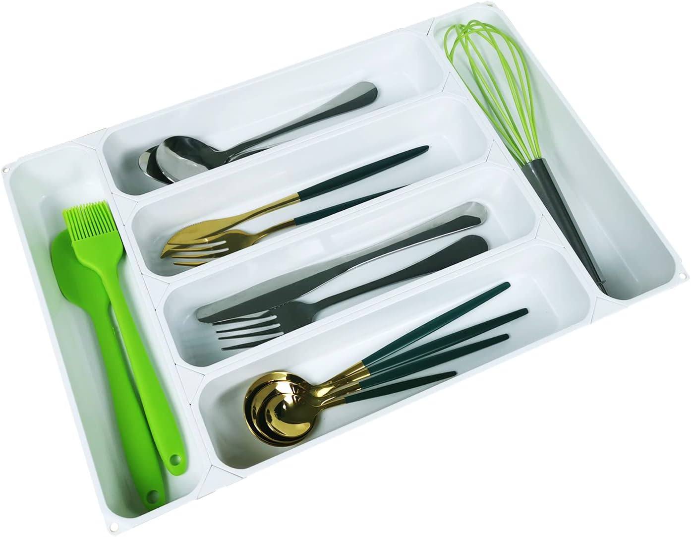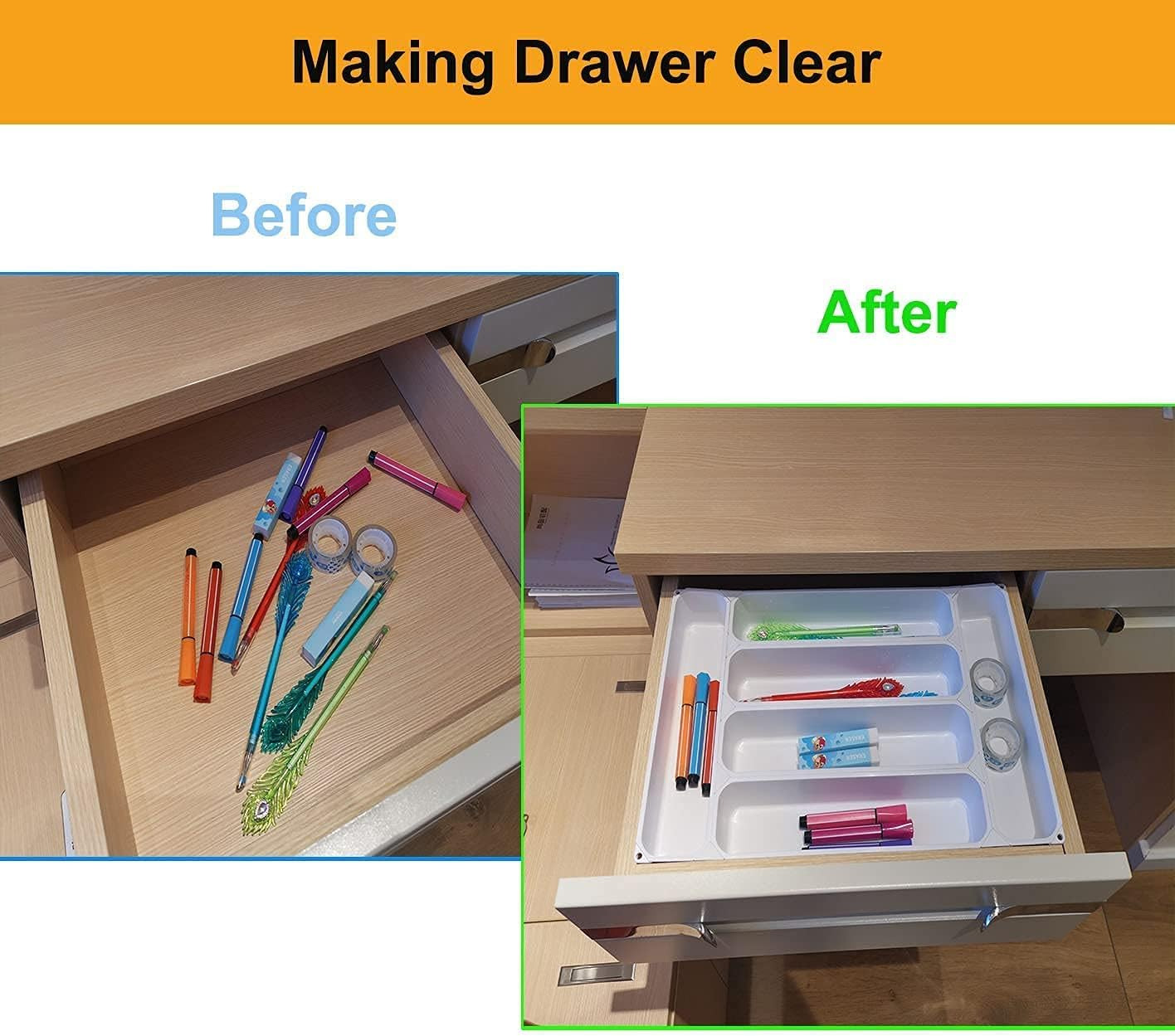 - 【QUALITY CONSTRUCTION】 - Utensil drawer organizer made of durable PP, shatterproof, food safe; smart and simple design, offer more DIY Match to fit your size of drawer.