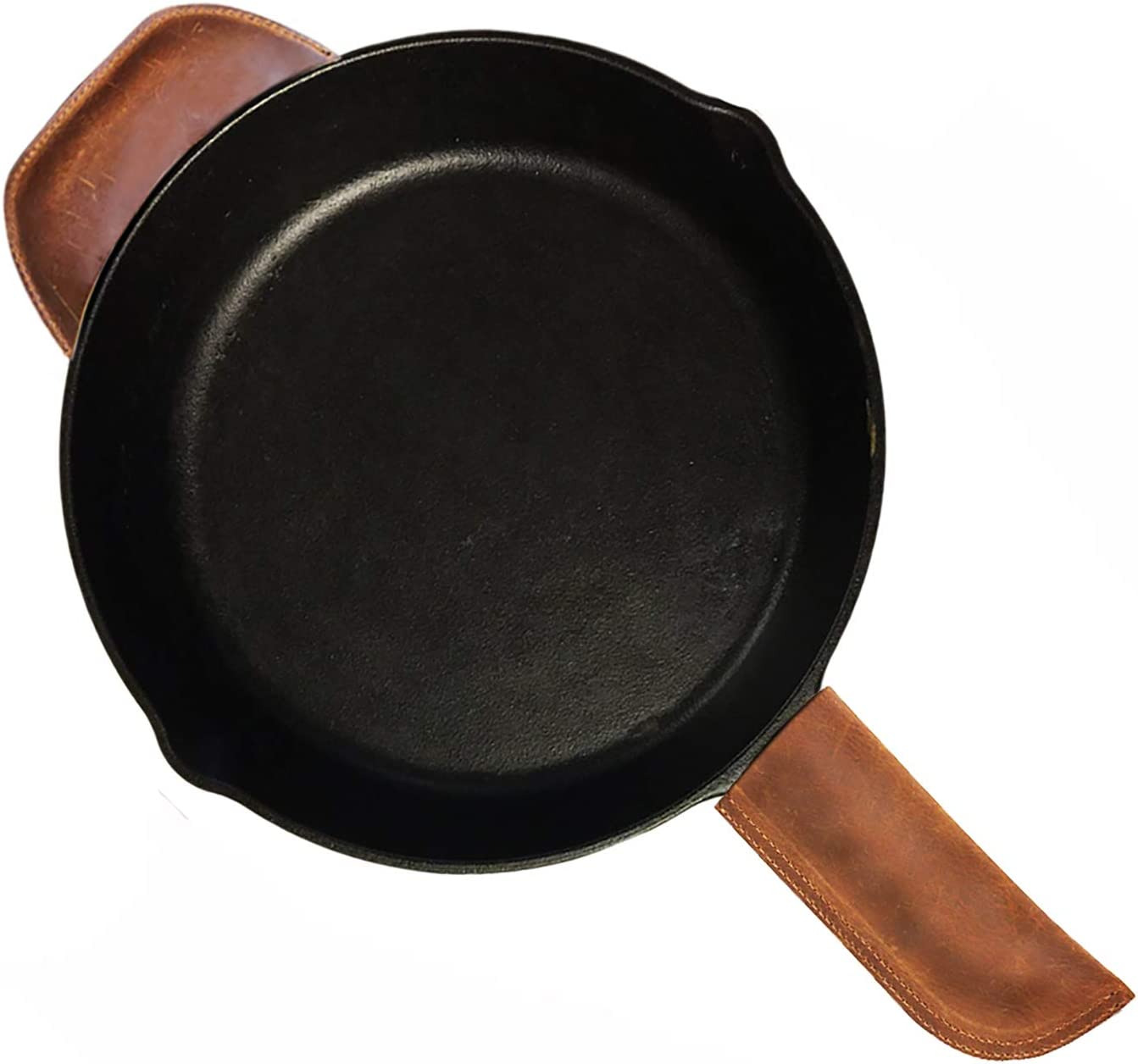 Genuine Leather Cast Iron Pot Handle Cover, Assist Pan Holder, Double Layered He