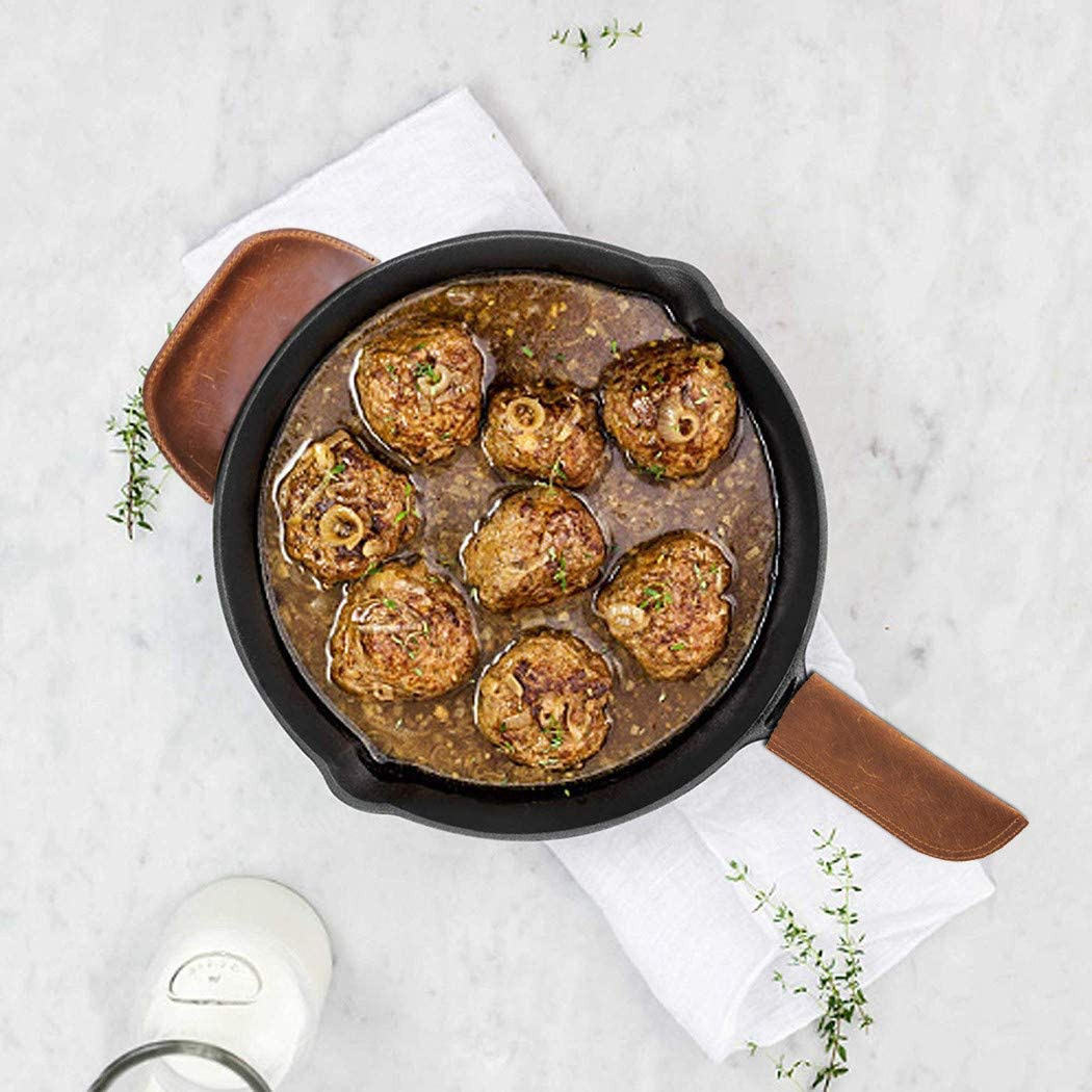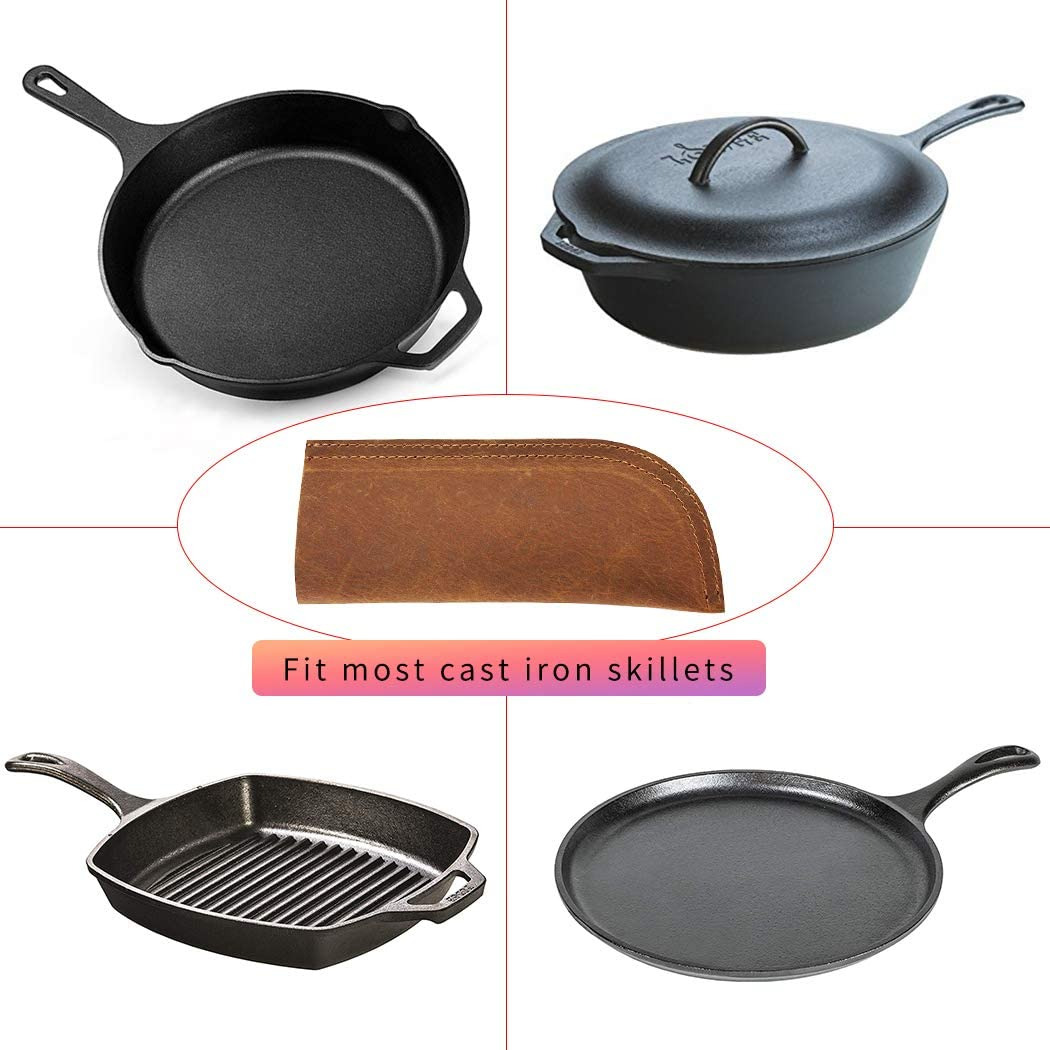 - ★Excellent Heat Resistance: This double layered leather handle holder protecting hands from hot handles, oven safe -104 ºF to 464 ºF (-40°C to 240°C).