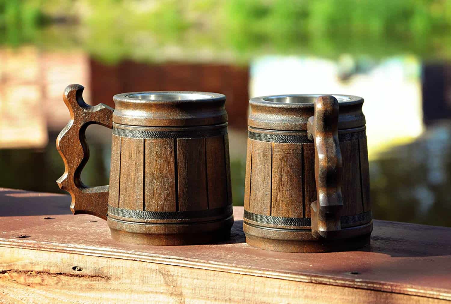 Handmade Beer Mug Oak Wood Stainless Steel Cup Box Gift Natural Eco-Friendly 0.5L 16oz Classic Brown, Gift for men, Cup for Beer, Beer Cup